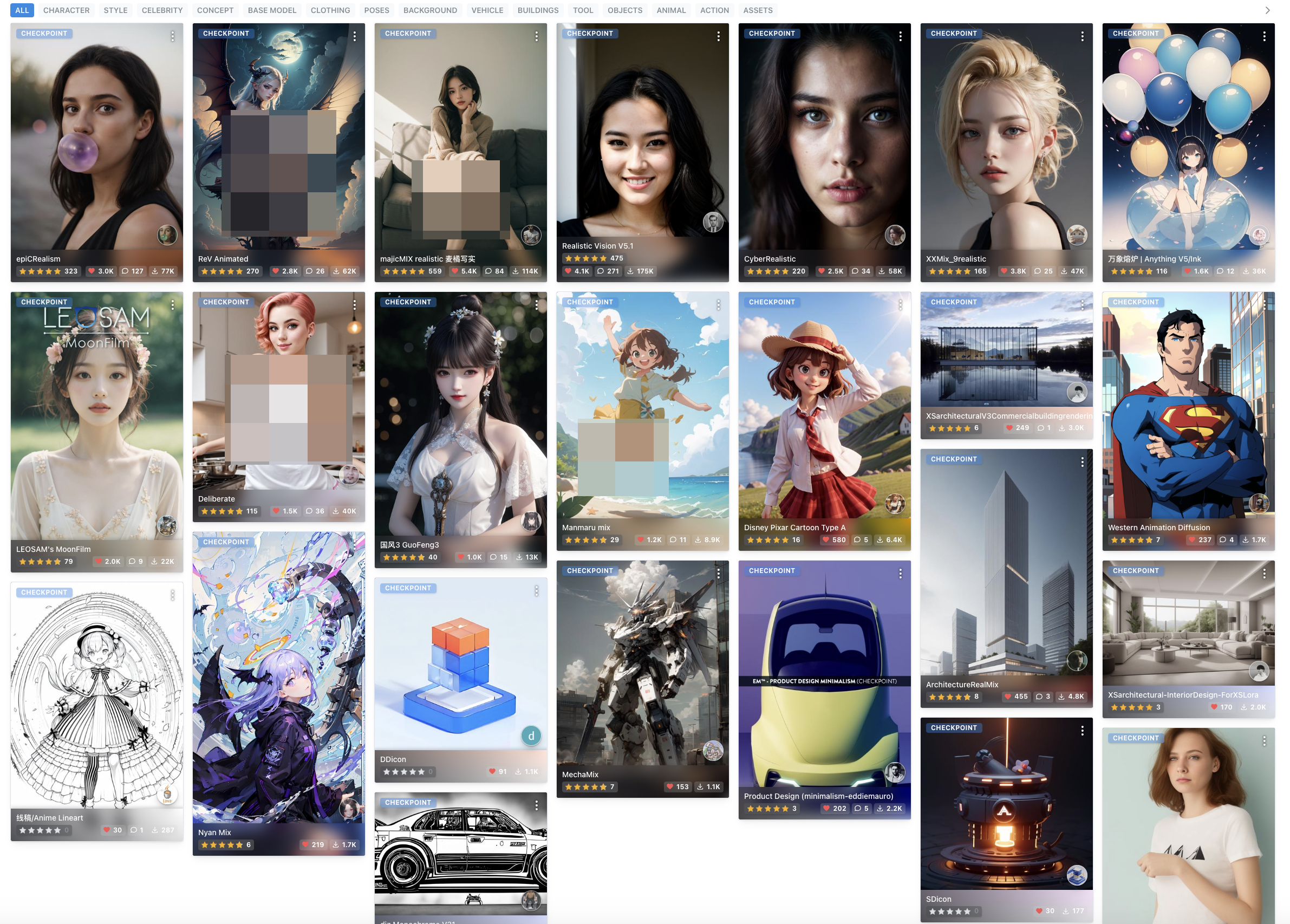 - 真人(亚洲/欧美)风格推荐( MoonFilm、majicMIX、t3)