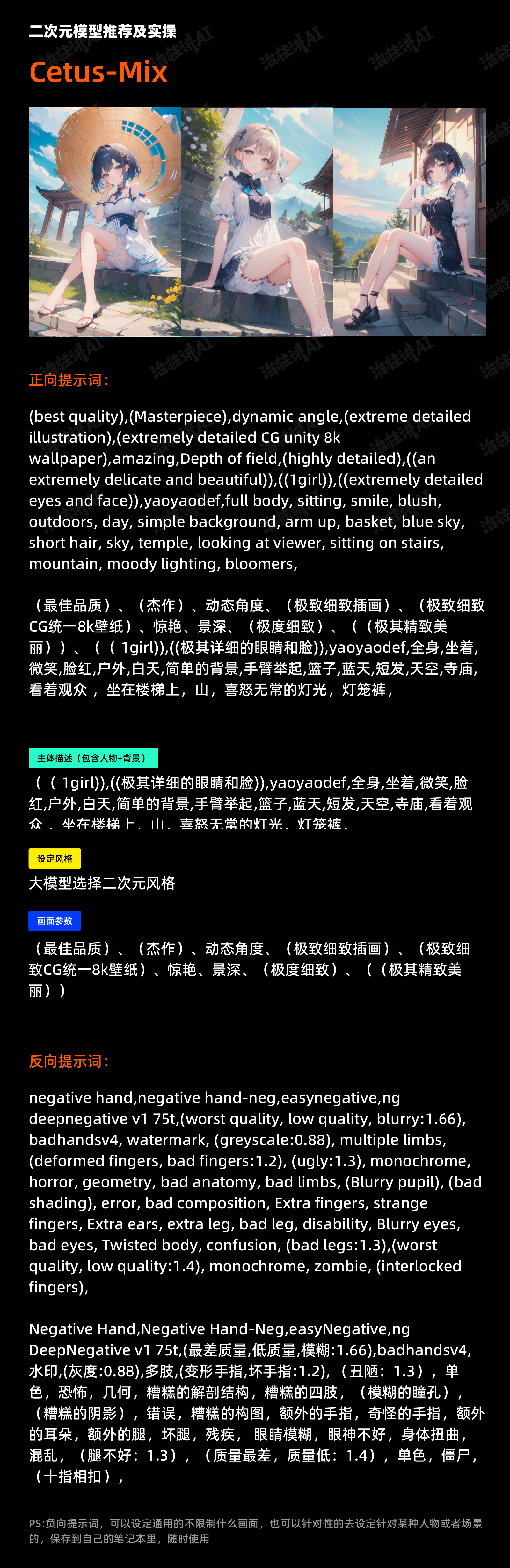 - 二次元风格推荐(Cetus-Mix、MeinaMix、Nyan Mix)