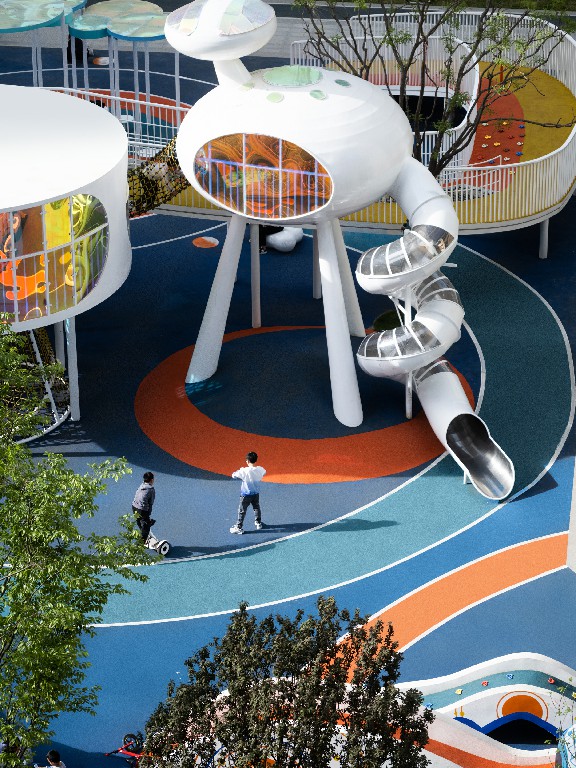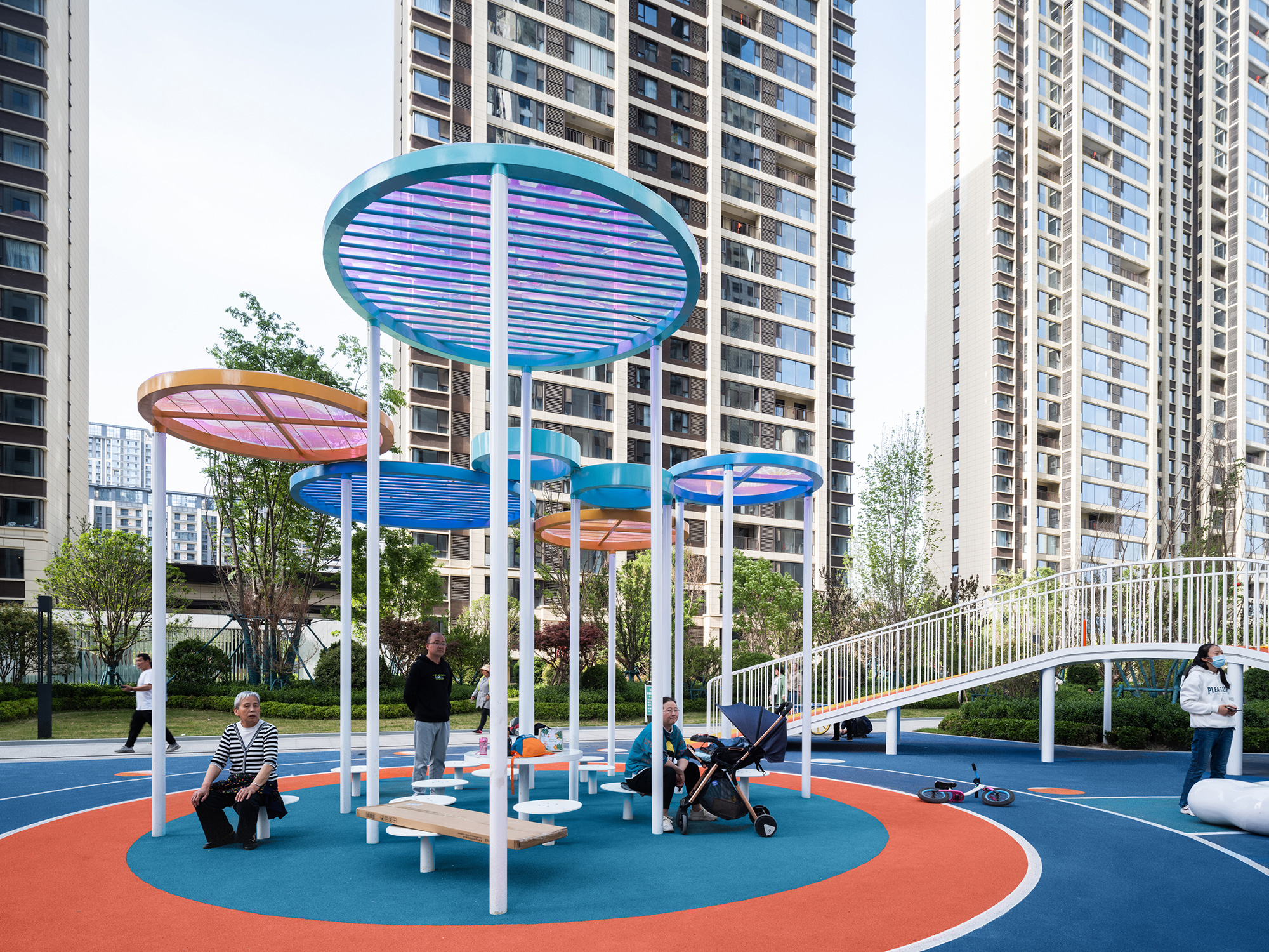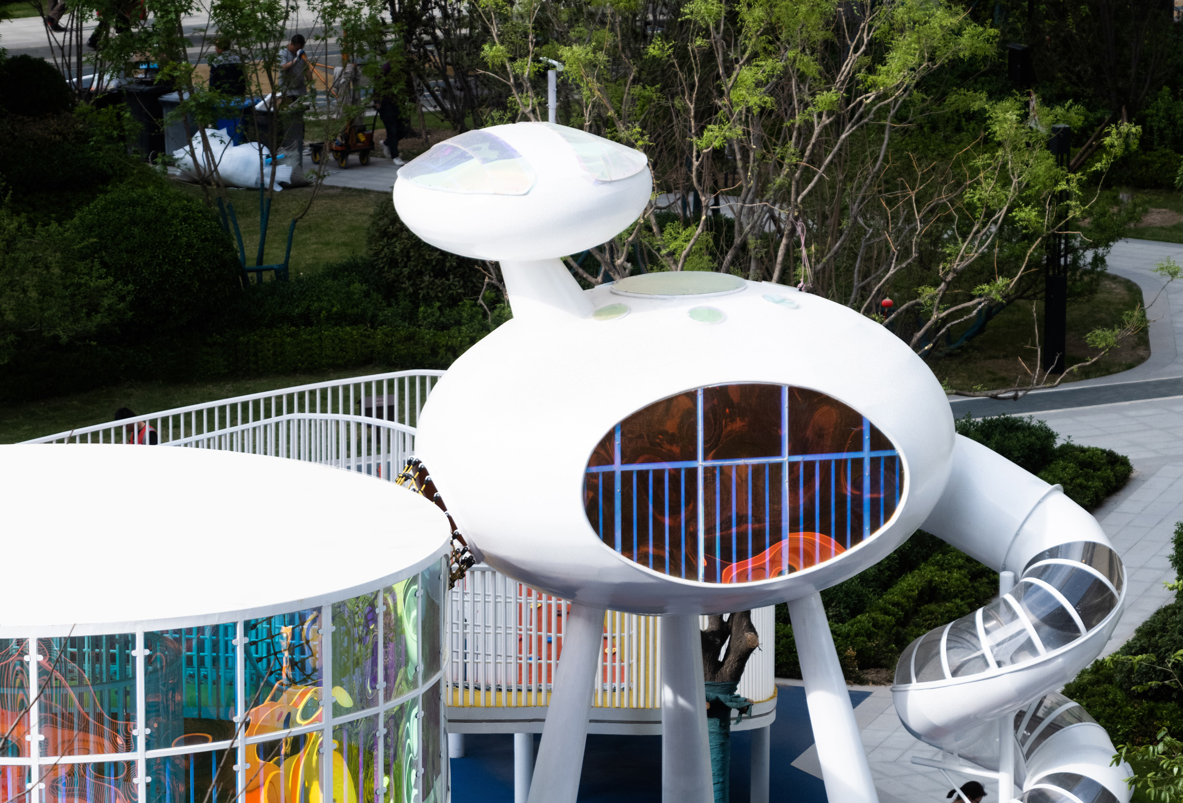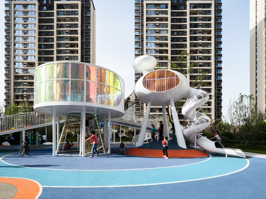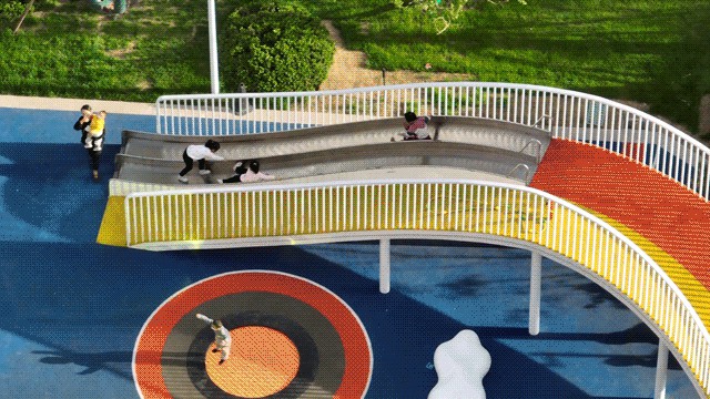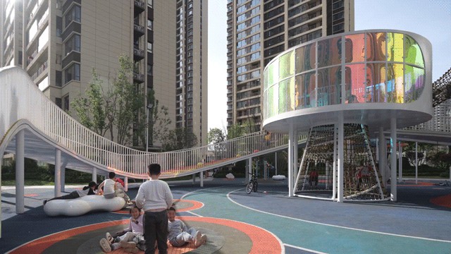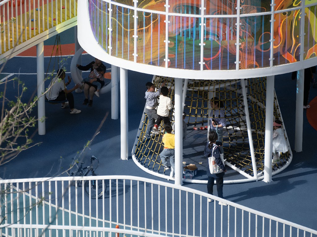 项目交付数月后,充满未来科技气息的儿童乐园,以及面向全龄的廊架聚场,已然深深融入人们的真实生活。日常里,大大小小的孩子们快乐共聚,穿行于变幻的时空隧道,收藏着每个瞬间的惊喜,绘写人生的宝藏信条 —— 每一天都是新的冒险,每一天都有美好奇遇。