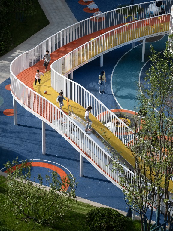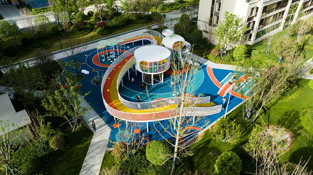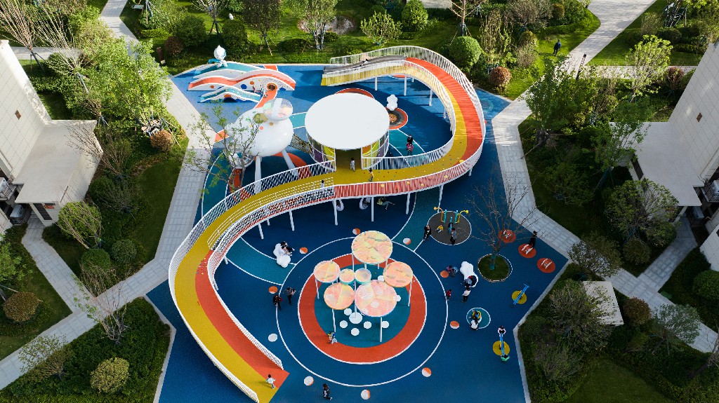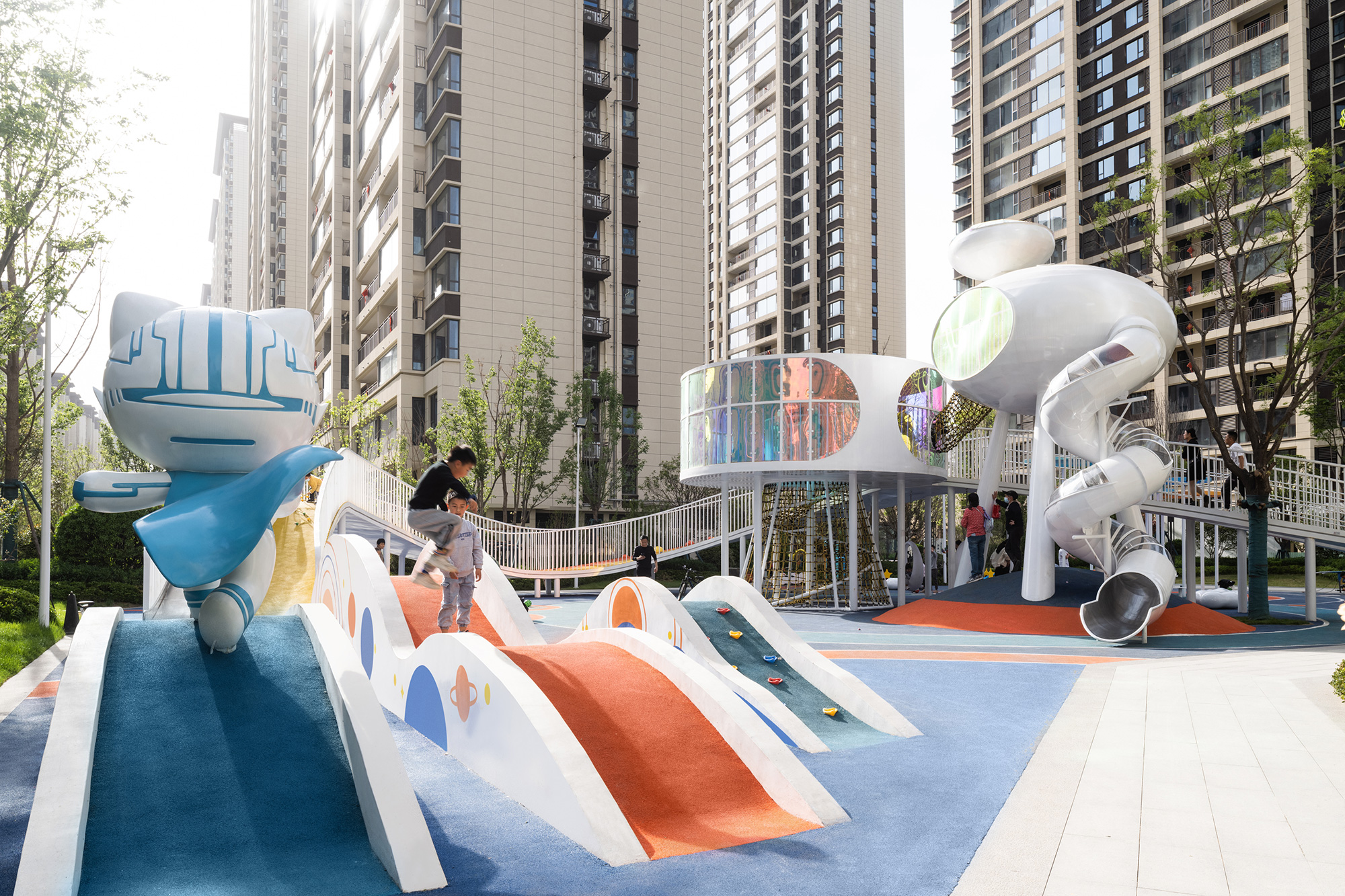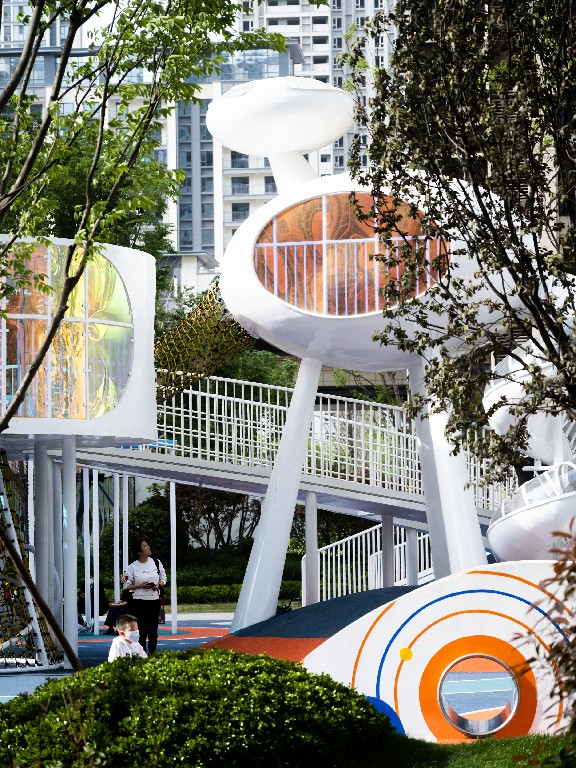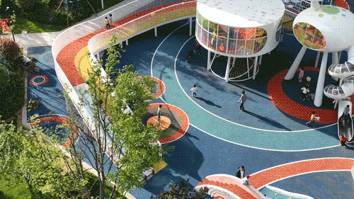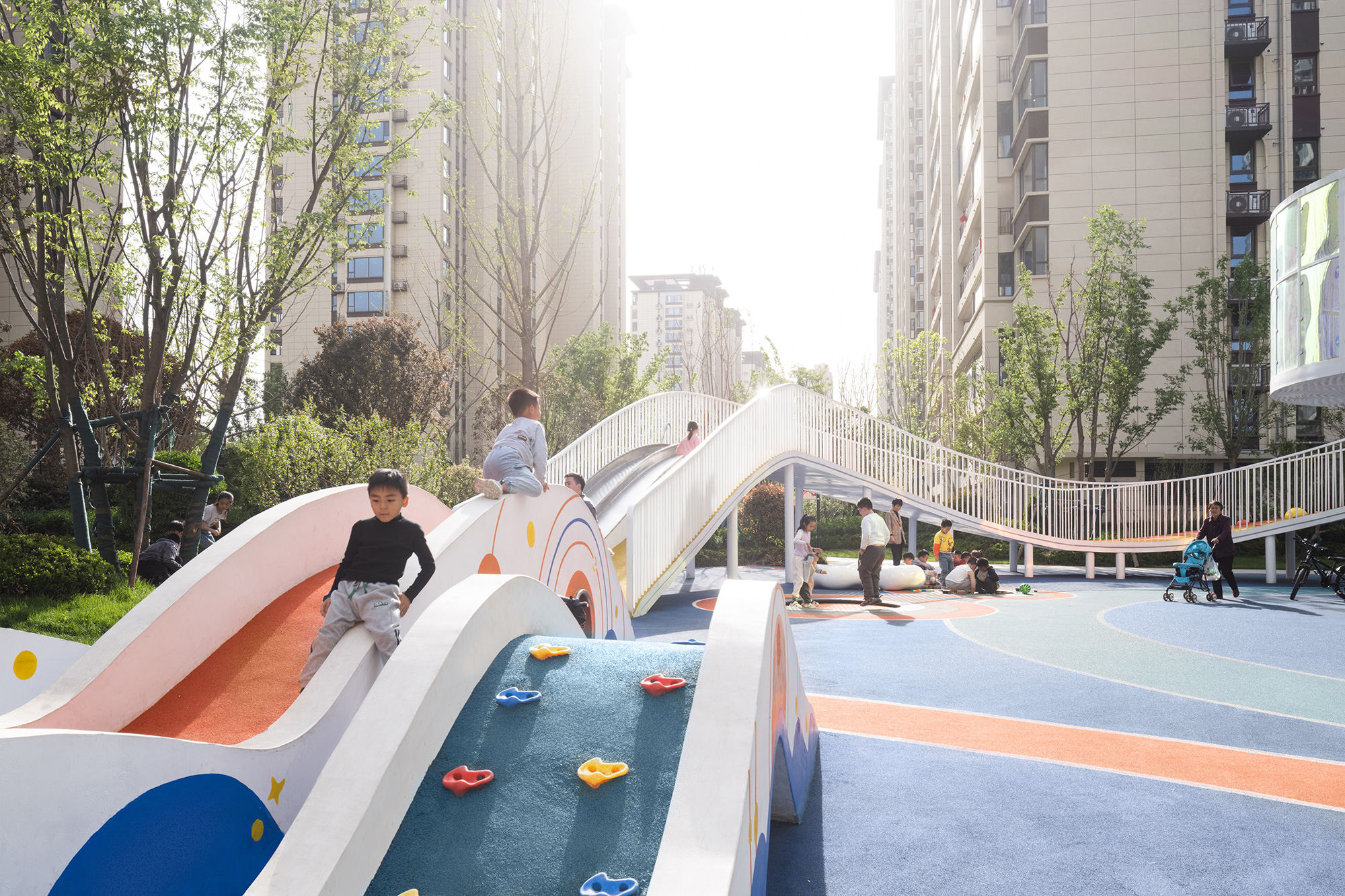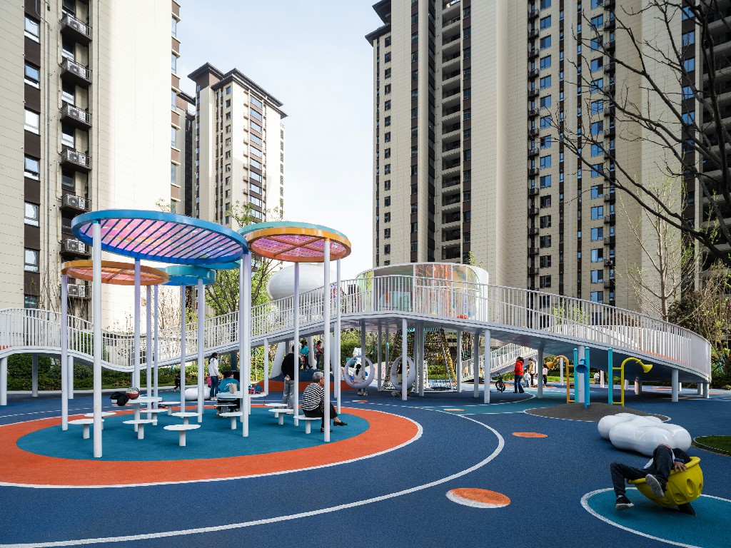 项目交付数月后,充满未来科技气息的儿童乐园,以及面向全龄的廊架聚场,已然深深融入人们的真实生活。日常里,大大小小的孩子们快乐共聚,穿行于变幻的时空隧道,收藏着每个瞬间的惊喜,绘写人生的宝藏信条 —— 每一天都是新的冒险,每一天都有美好奇遇。