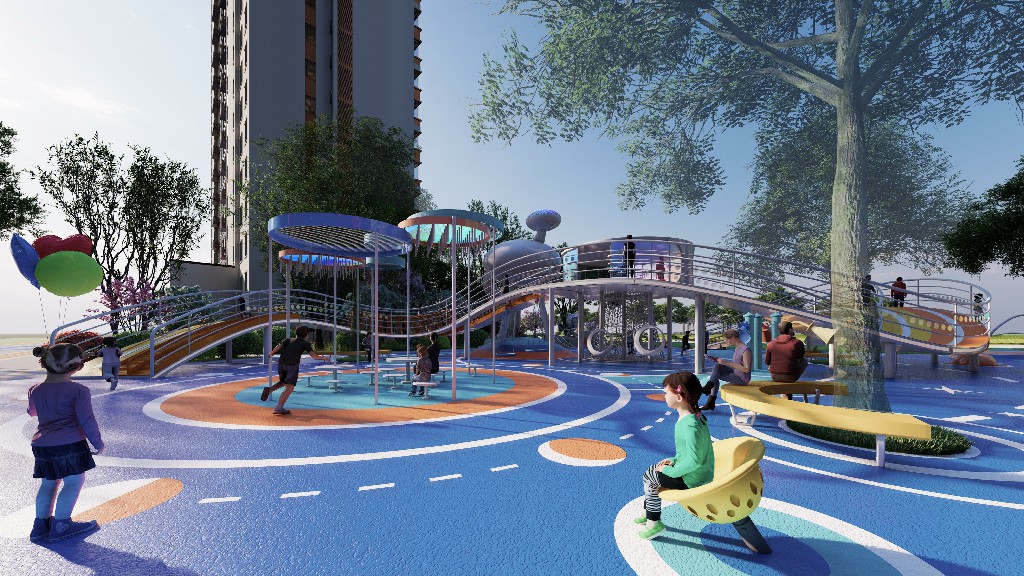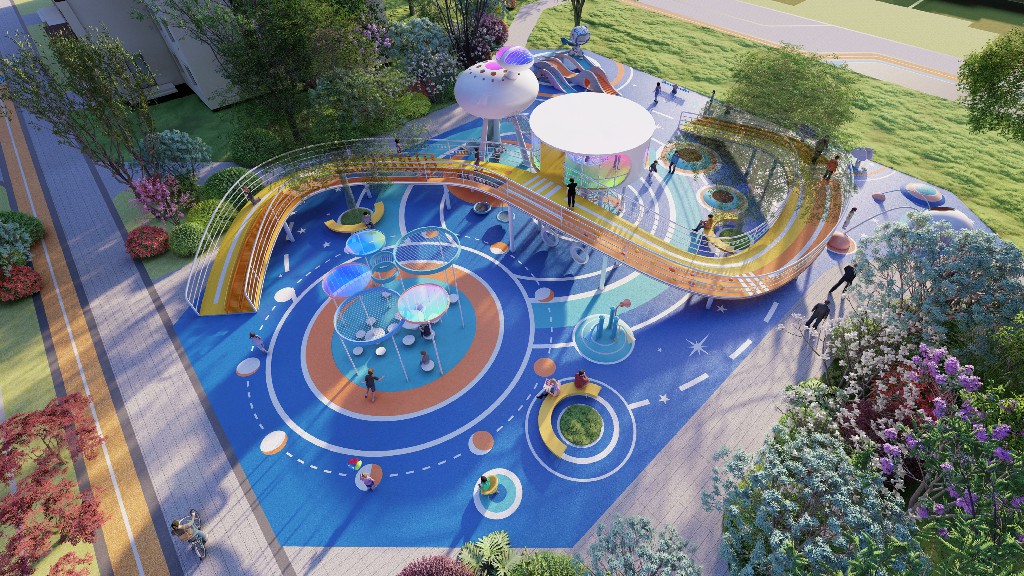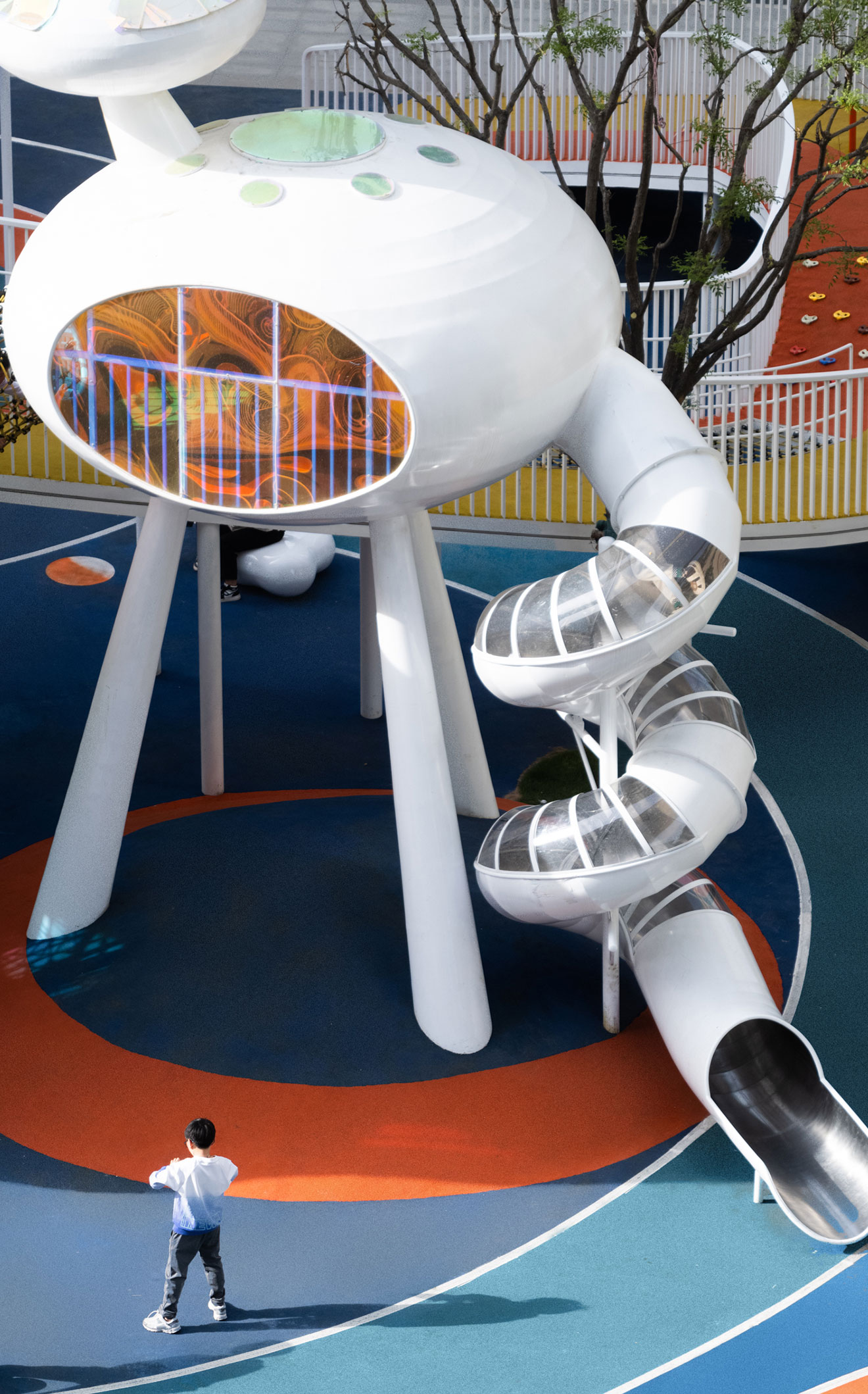 设计师深知不同年龄段儿童的体能与成长所需,以儿童乐园为场景载体,透过多元星际的穿梭旅行故事,赋予社区儿童乐园以难度、体能和乐趣循序渐进的故事线,见证孩子们从蹒跚学步、缓慢爬坡到勇敢滑梯、自由奔跑到机智捉迷藏等的快乐之旅。
