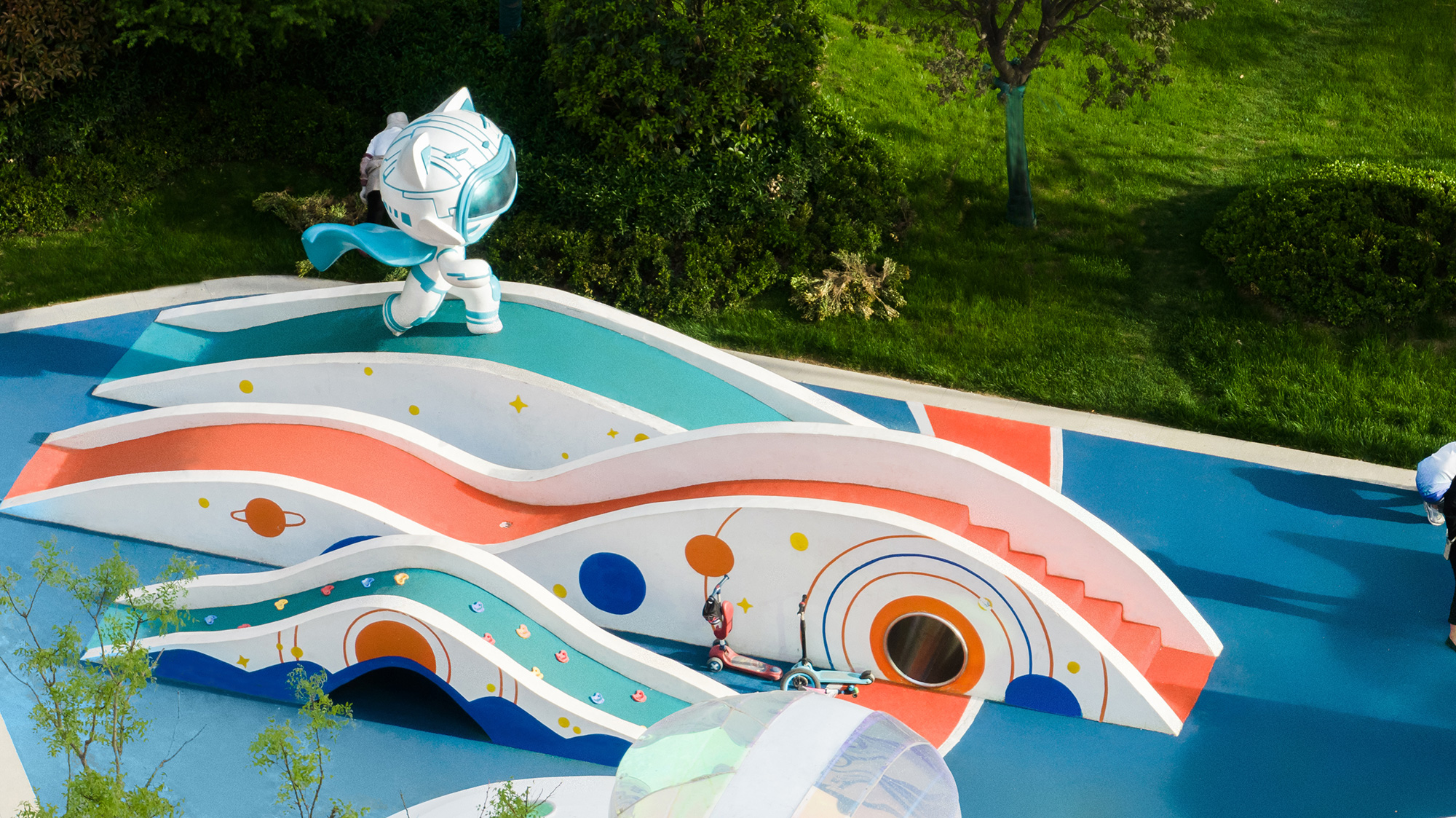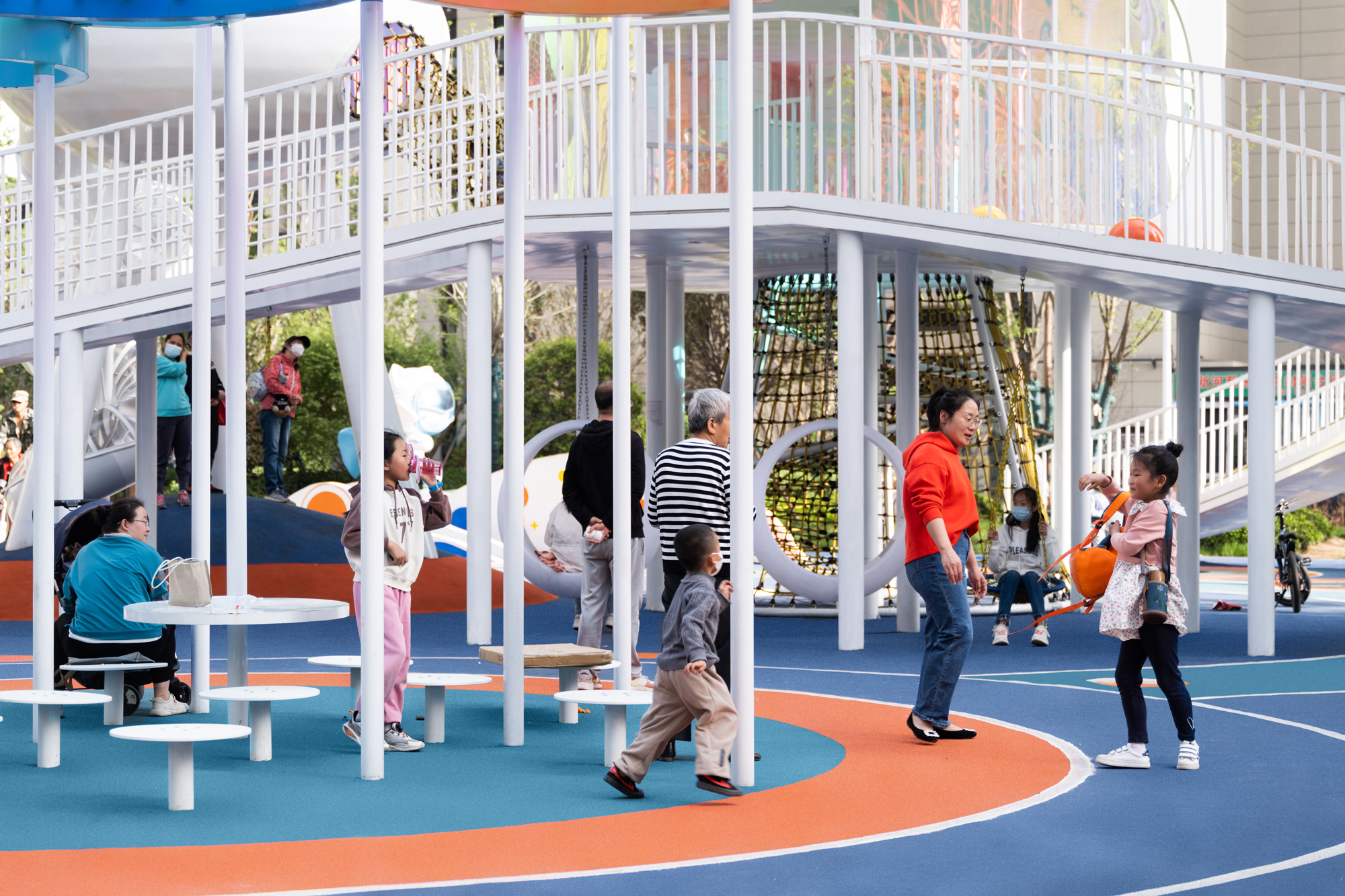 关注儿童友好,设计从各年龄段孩子的视线高度出发,尽可能营造一个孩子们能平视到的星球漂浮世界,既有探索的乐趣,亦有关怀的温度。“和小K竞速赛跑,比比谁先抵达终点~”活力满满的“小探险家”出发啦。