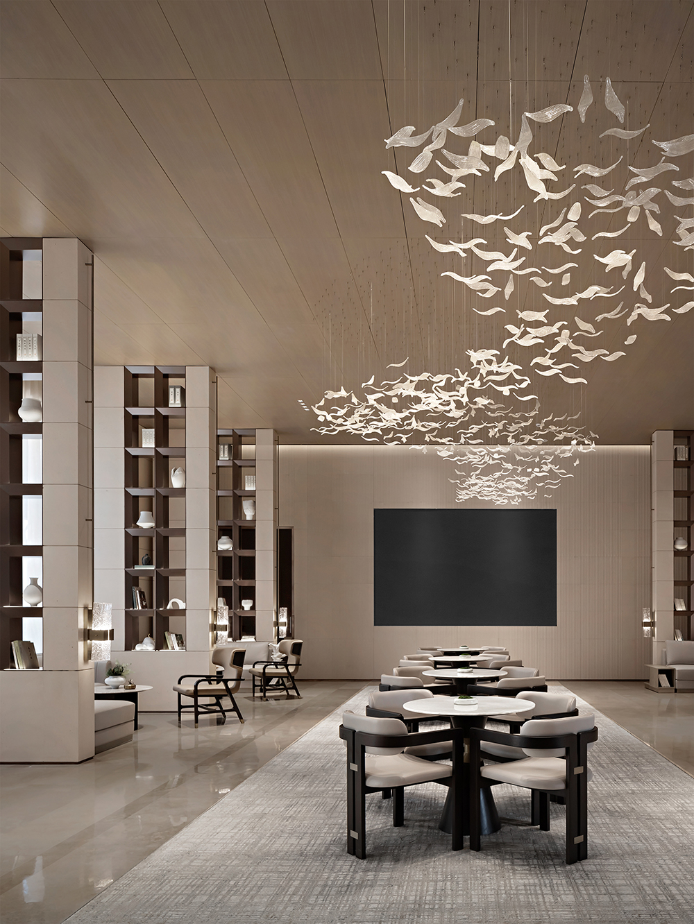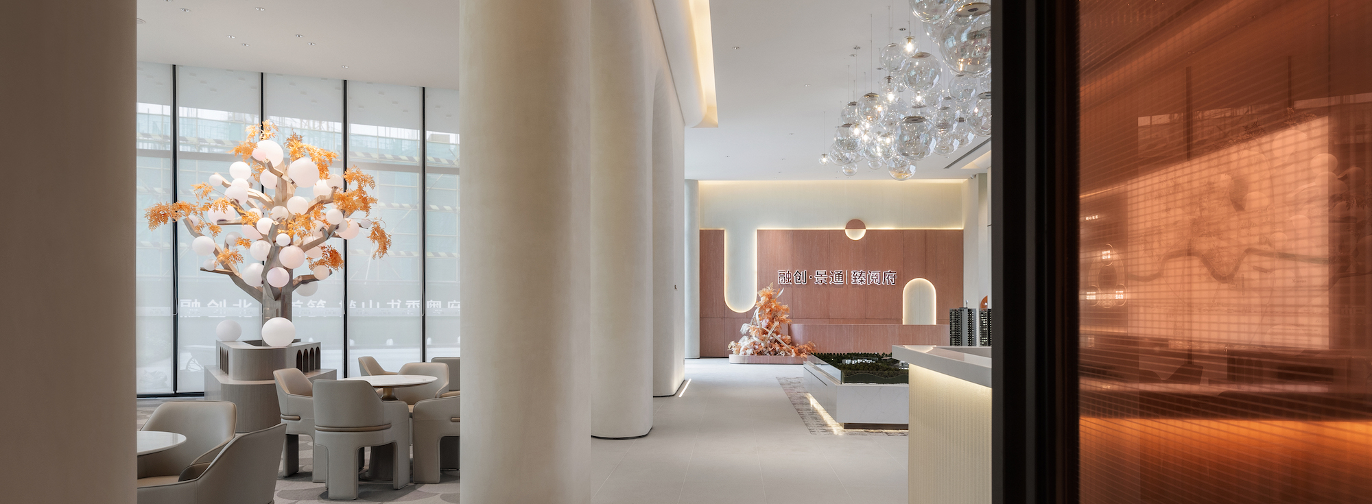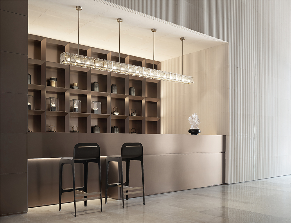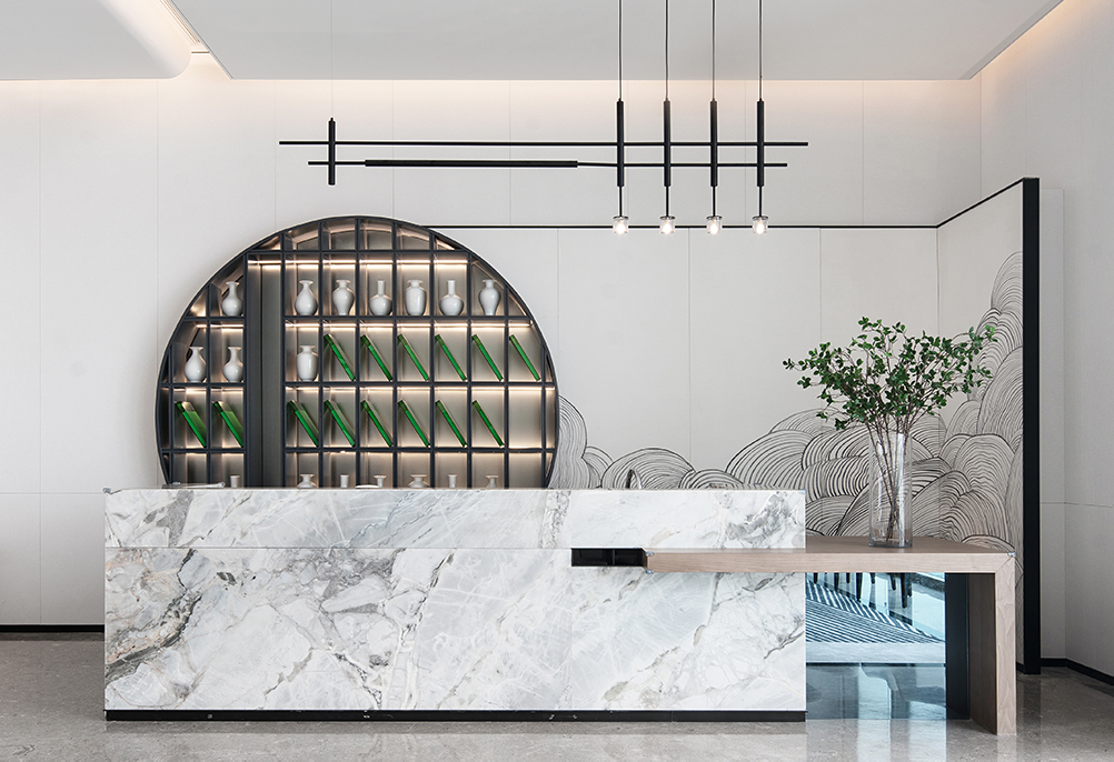 在售楼处的营造上,其秉持着设计赋能生活容器的观点,对东方的洞察,始于对文化源流的叩问。“我们相信,售楼处的展示界面,是人文的凝聚,亦是在地精神的镜观。因此,每一次设计,皆是对中西美学的融汇,立足国际化的前沿视角,和而不同,构建产品与体验的差异化。”