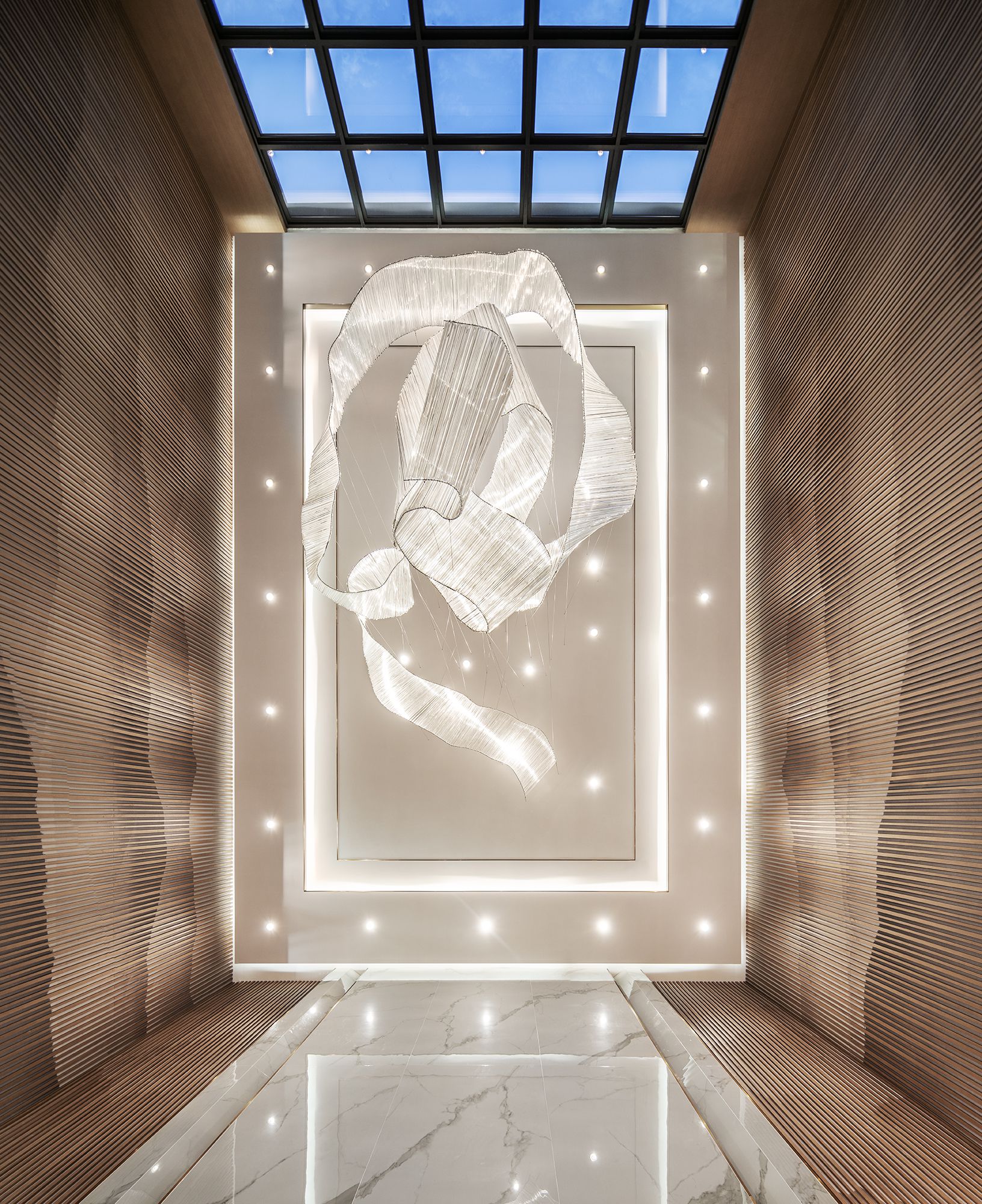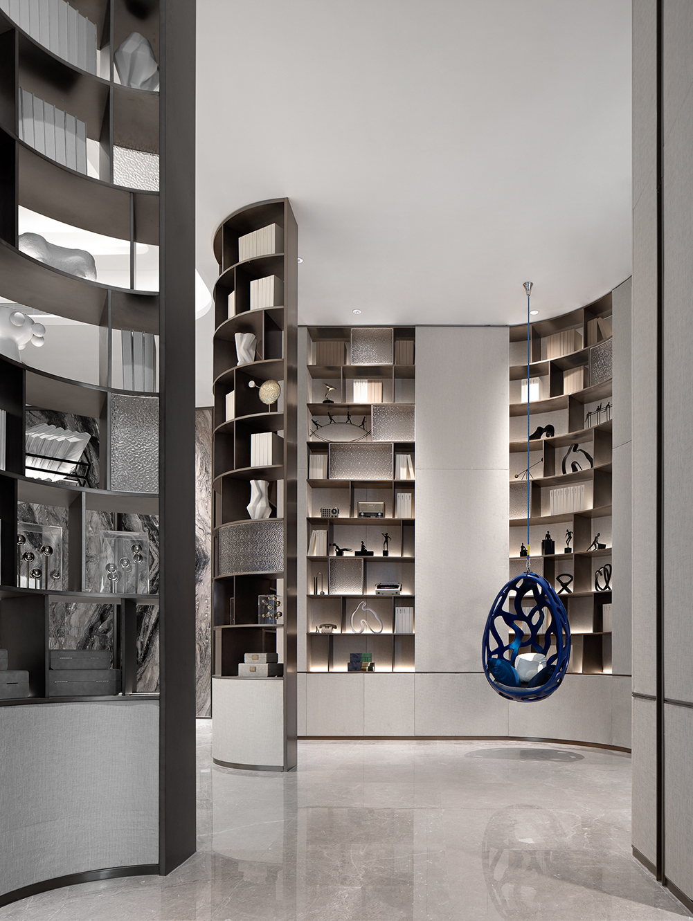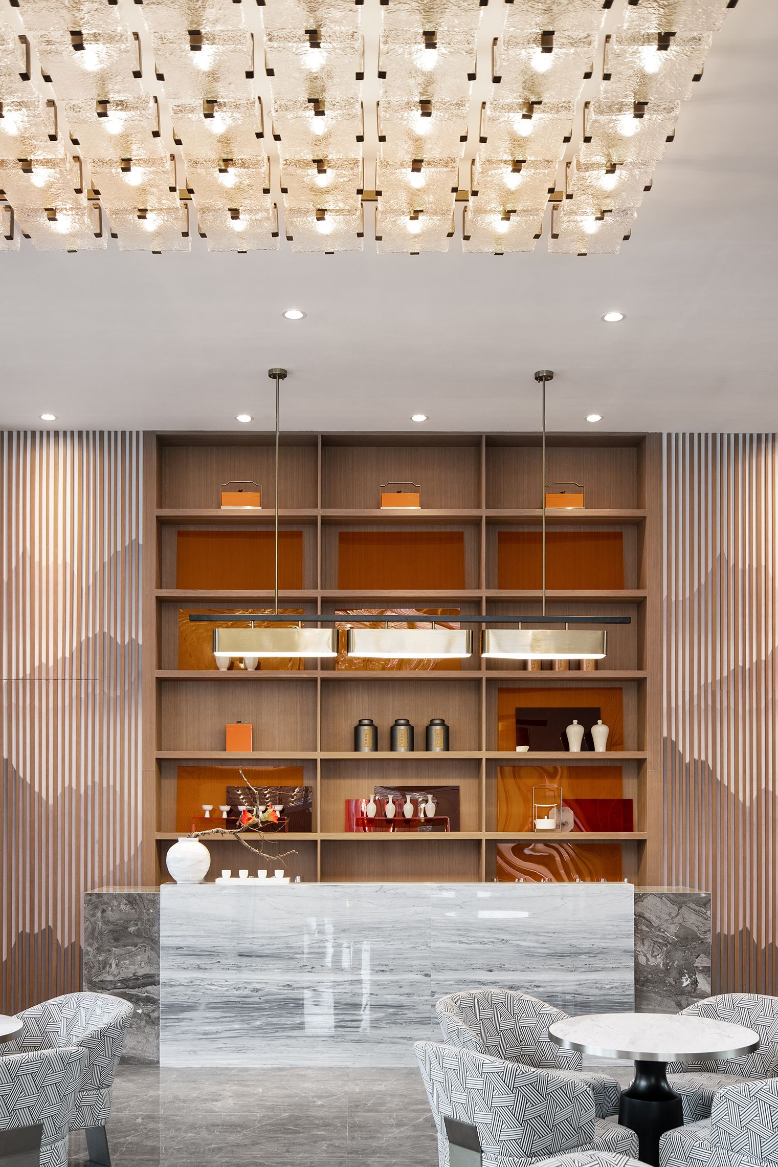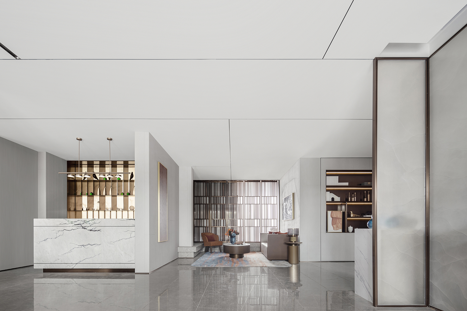 在售楼处的营造上,其秉持着设计赋能生活容器的观点,对东方的洞察,始于对文化源流的叩问。“我们相信,售楼处的展示界面,是人文的凝聚,亦是在地精神的镜观。因此,每一次设计,皆是对中西美学的融汇,立足国际化的前沿视角,和而不同,构建产品与体验的差异化。”