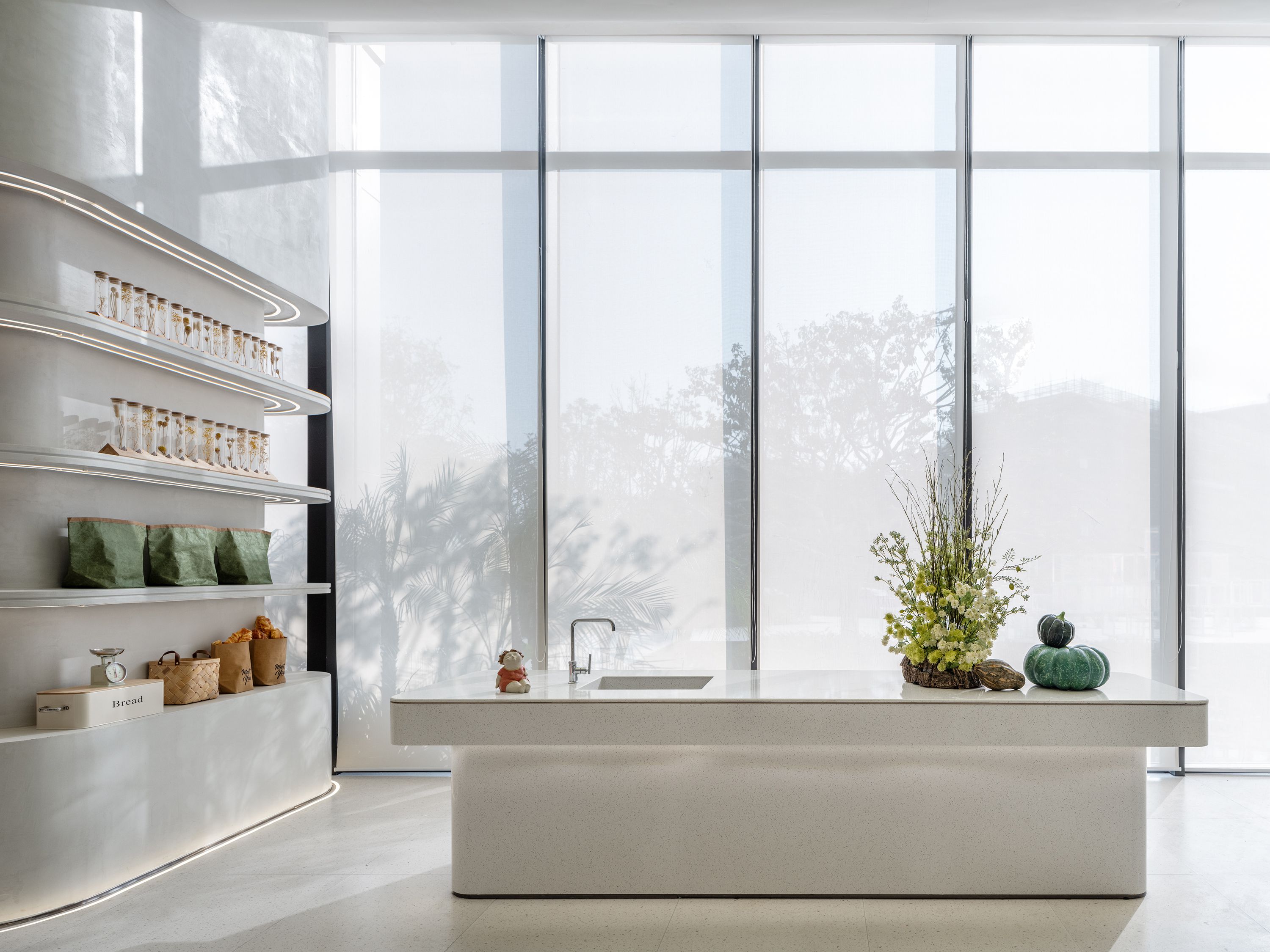 “色彩是有能量的,也是有情绪价值的。我们希望以缤纷色彩背后的文化力,传达室内外互动的理念,去思考室内外的视觉体验。”YORO御融设计选择不具备攻击性的有机曲线,营造一种柔和、有趣、灵动活泼的氛围,整体布局灵活,以模块化来最大化的利用和拓展空间。