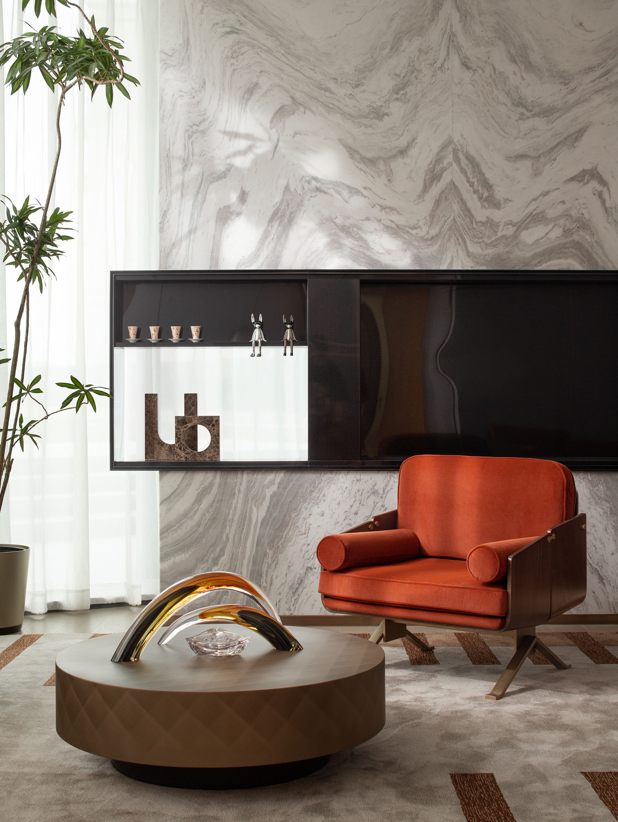 起笔于对项目在地优质资源的解读,YORO御融设计希望营造出一种欣然向上、优享高质的生活情绪。循于简繁之道,空间开篇以寥寥几笔的“淡墨”抒绘型格,一山一水,一叶一草木,组成自成一格的场域秩序,静物不语,却暗含勃勃力量。