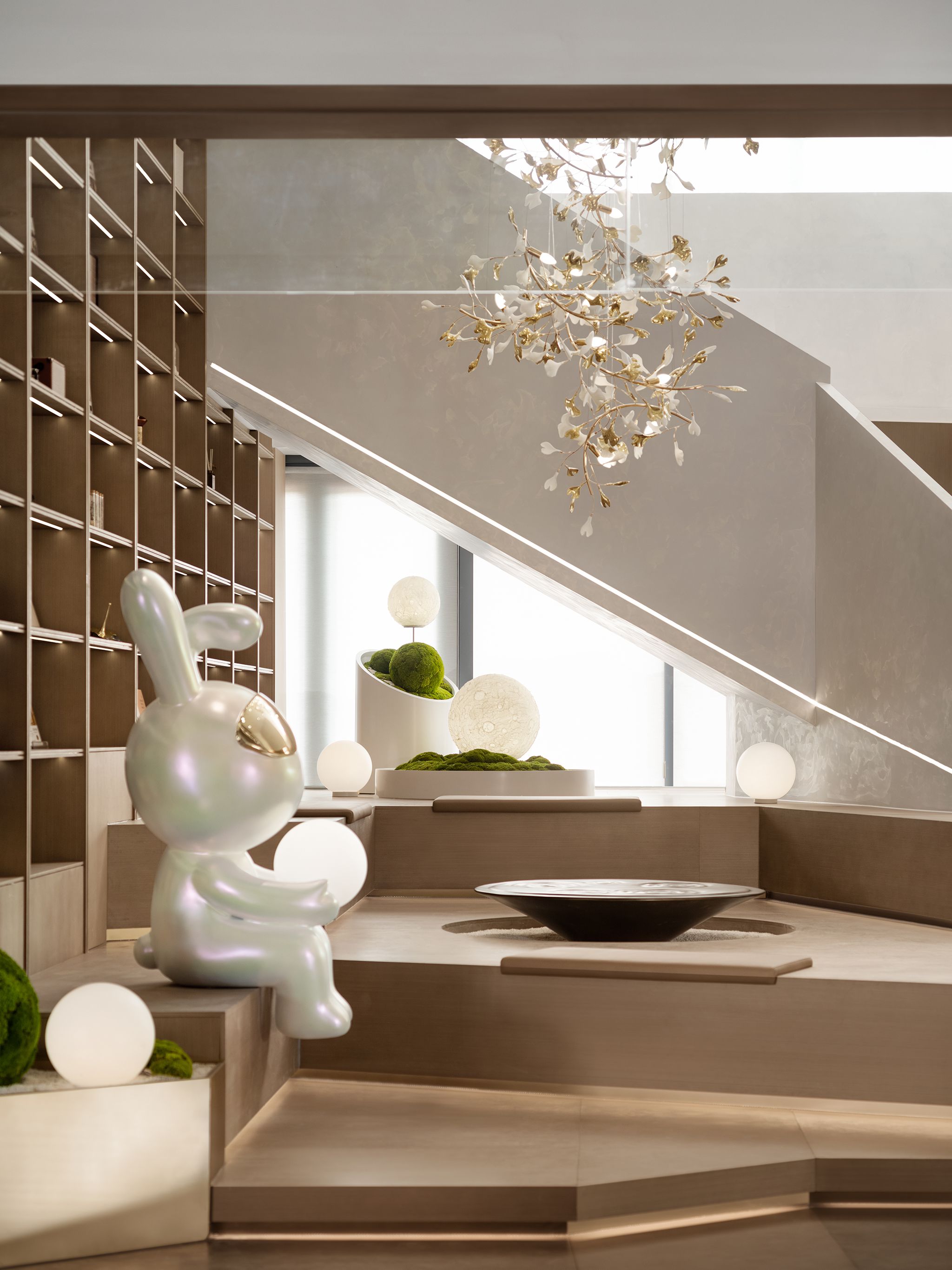 在东方语境中,月亮是具有美学意味与哲学思考的,同时也代表人对希望的探索和对美好生活的向往。YORO御融设计引“月”与“园”为线索,重塑人和自然的关系、人和时间的关系,让观者产生想象与情感共鸣,共同探索建筑诗意般的潜力,让艺术与心灵在这片天地中返璞归真。