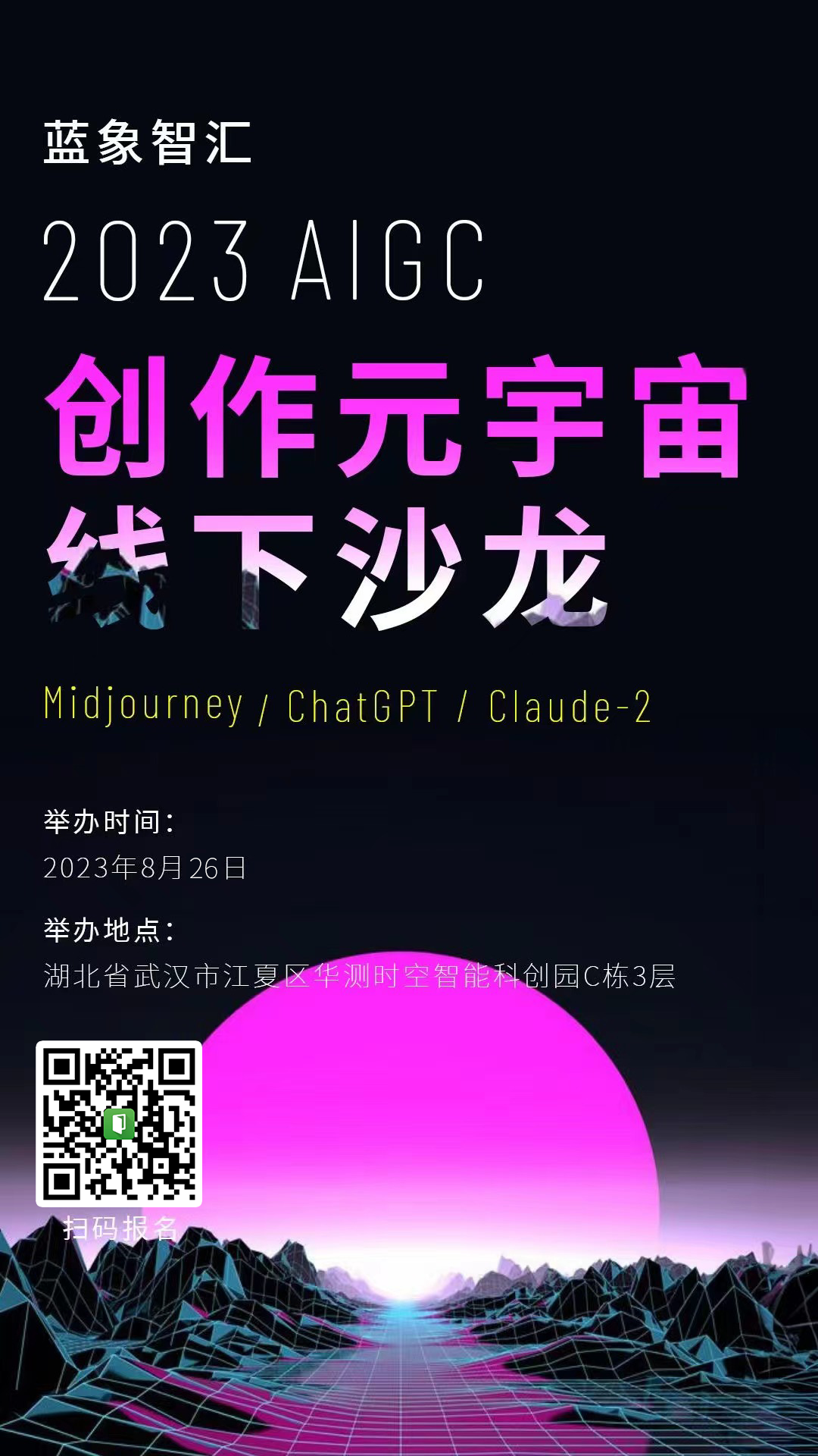 主题:蓝象智汇-AIGC创作元宇宙线下沙龙(第9期)Midjourney、ChatGPT、Claude-2、项目实操!