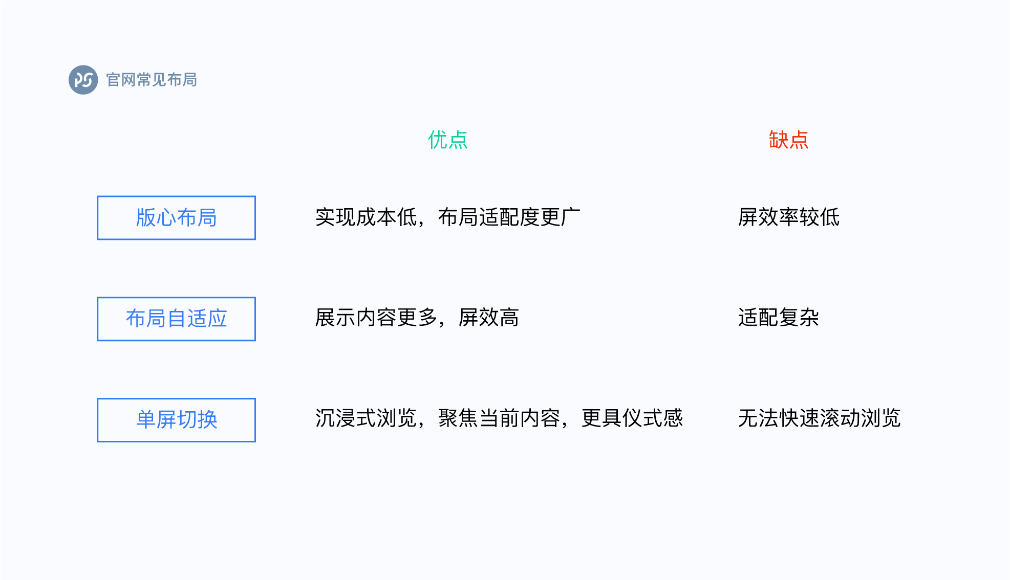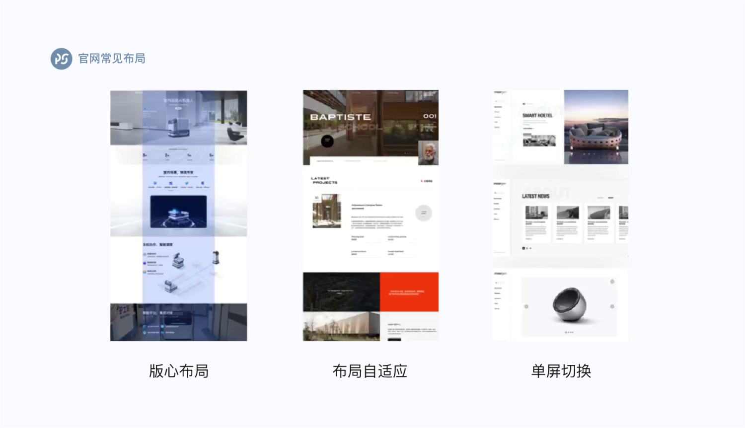 官网的常见布局有:版心布局、布局自适应、单屏切换