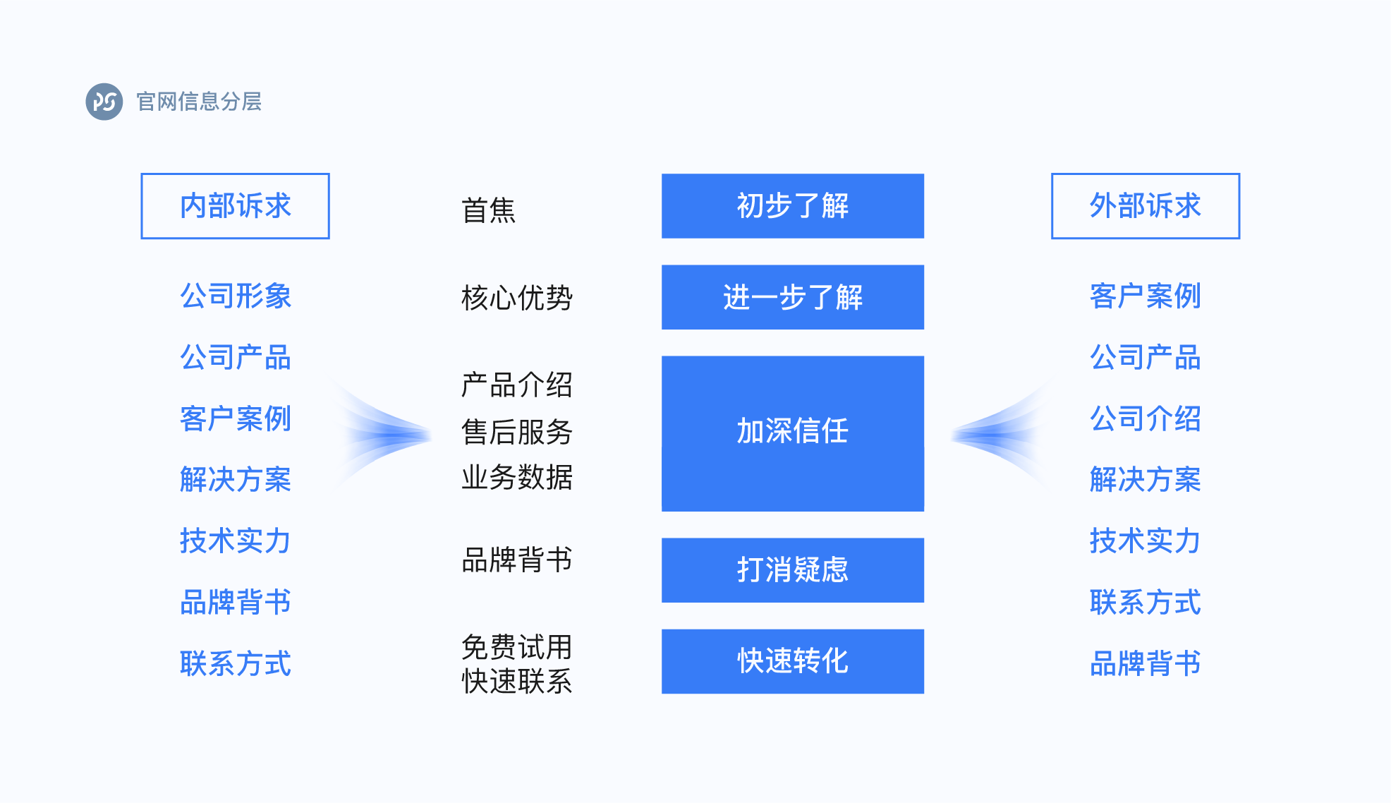 2.根据内部和外部诉求,官网的信息分层排序非常重要。