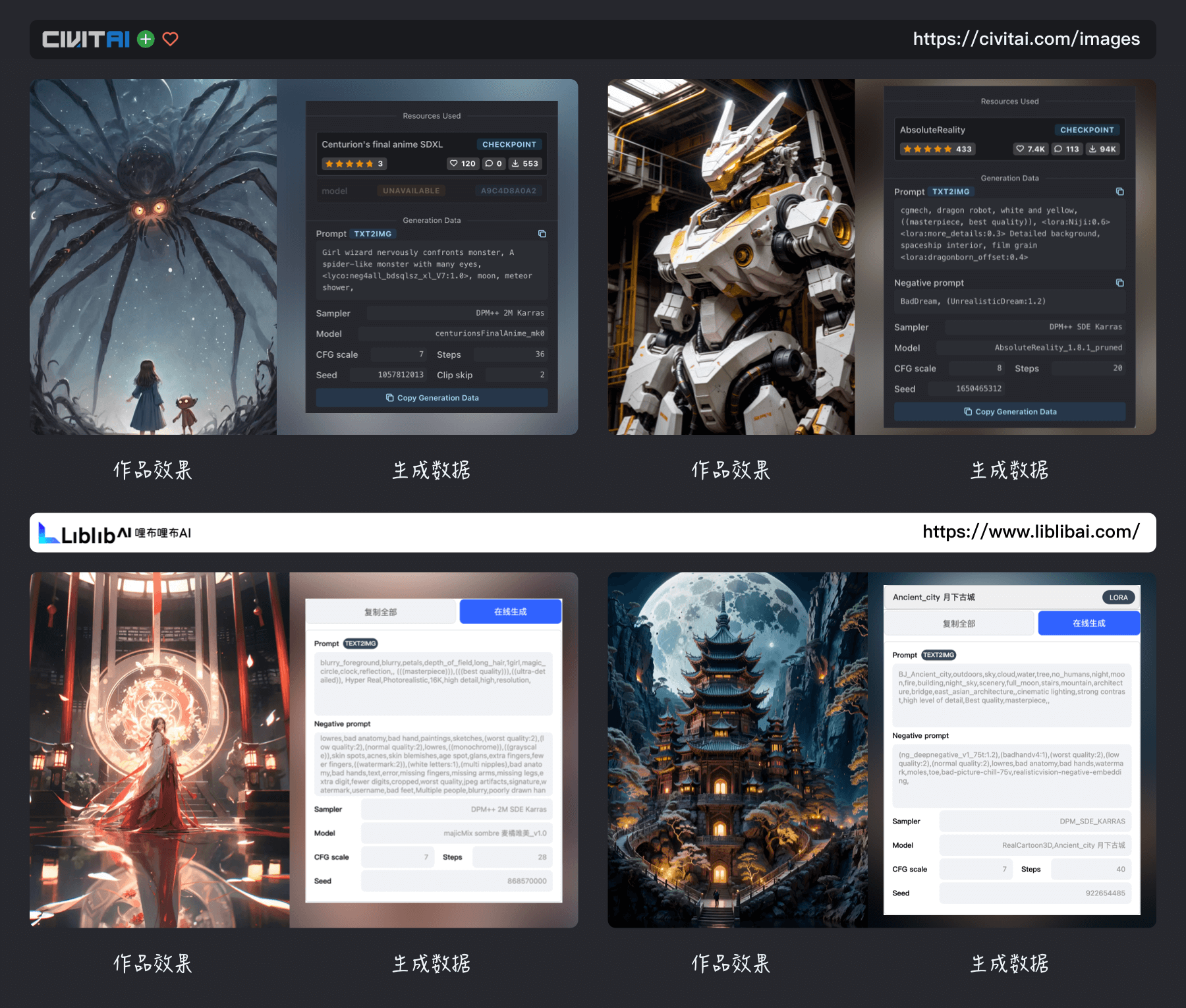 在反复的尝试和学习过程中,想要尽快熟悉软件操作,那么自己一顿尝试后在结合一些教程是比较快的,当你想要更深入的掌握SD并生成更惊艳的效果,我感觉还得是多“抄作业”,方法也很简单,就是对着相关平台用户分享的作品参数对着来,从主模型选取到扩展模型权重,再到正反向提示词等,全部复刻一边;