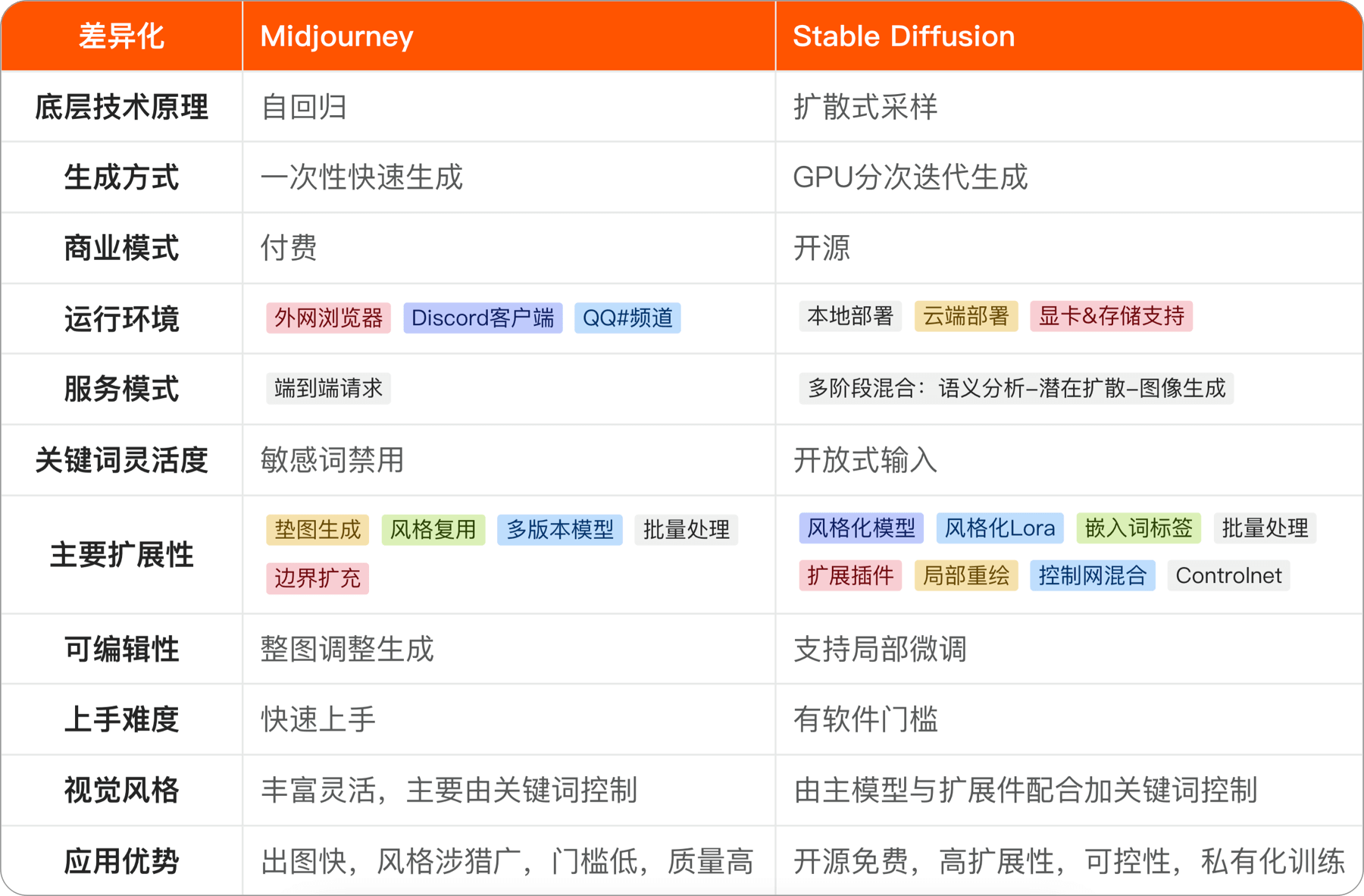 Midjorney&Stable Diffusion特征差异