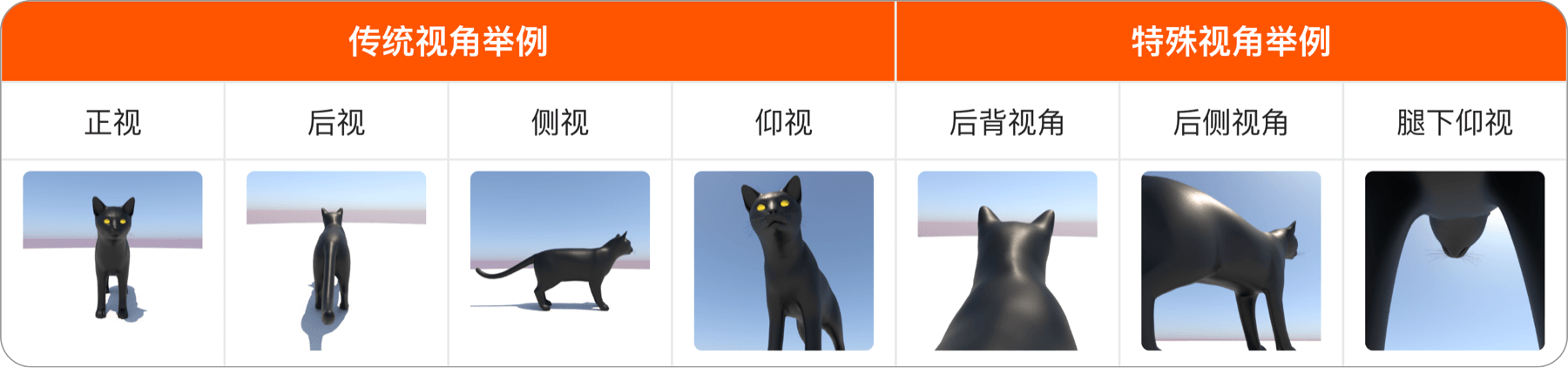 透视(perspective)、景深(depth of field)、俯视(bird's-eye view)、鱼眼(fish-eye view)、顶视(top view)、广角(wide-angle)、鸟瞰(aerial view)、等距(Equidistant perspective)等