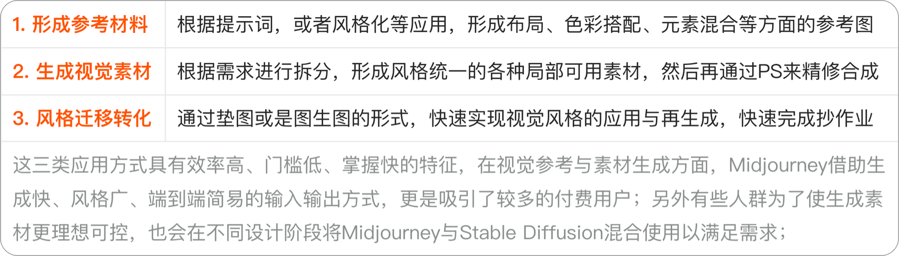 期间笔者看了很多AIGC绘图应用的分享,也参加了些相关沙龙,基本上主流的设计应用就三个方面;
