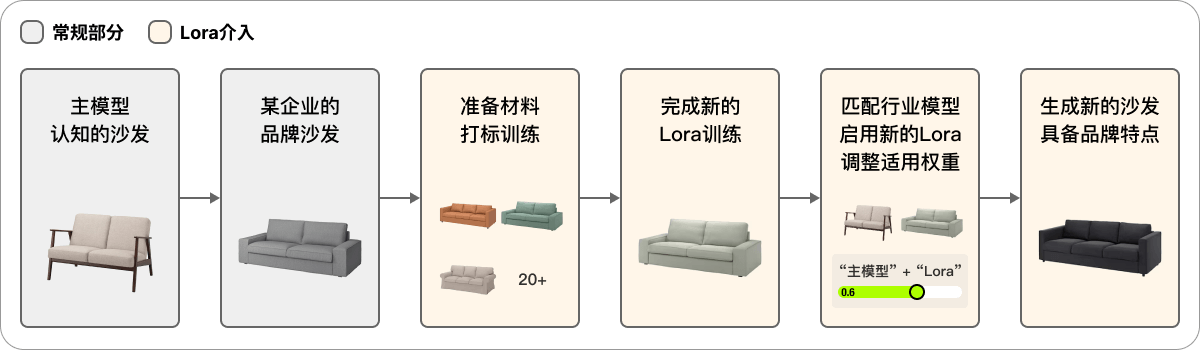 关于模型沉淀,自己的话,反正有条件有兴趣随便弄,如果是面向企业办公的话,则要考虑两个属性,一是定制化,二是复用性,即市面上的模型不能满足,且模型训练完有反复应用的价值。主模型可以很好的涵盖行业特征进去,但是炼丹的难度跟成本会比较高,如果说有适合的主模型能够满足事物提示词的理解生成,但是效果不佳,这个时候比较建议训练Lora模型来微调结果,原因如下;
