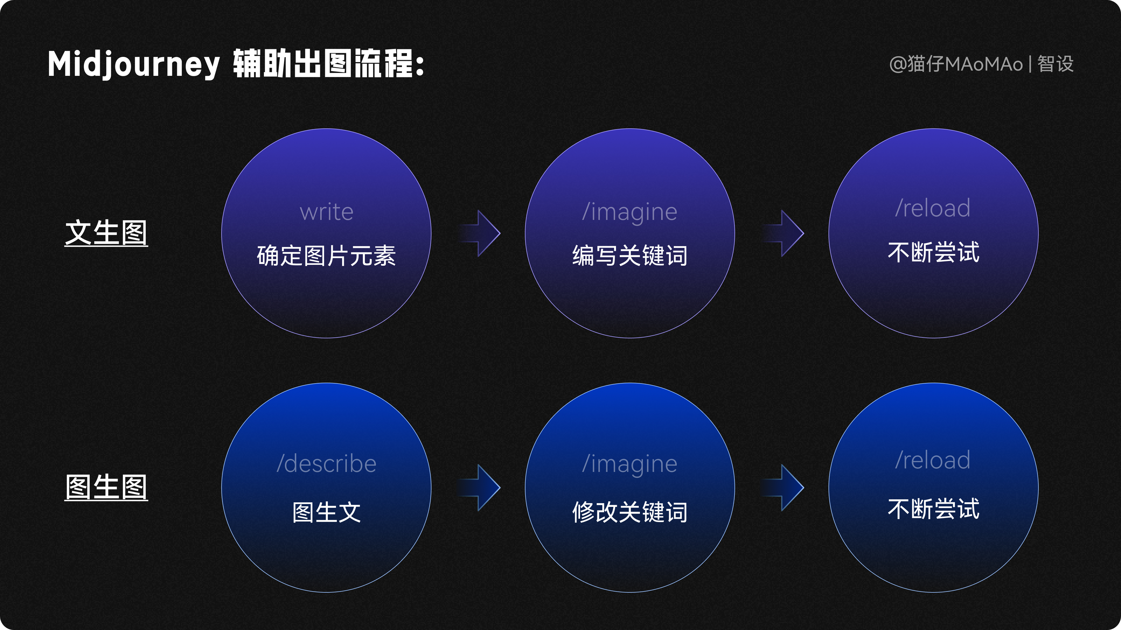 Midjourney生成图片有两条路径:“文生图”和“图生图”;