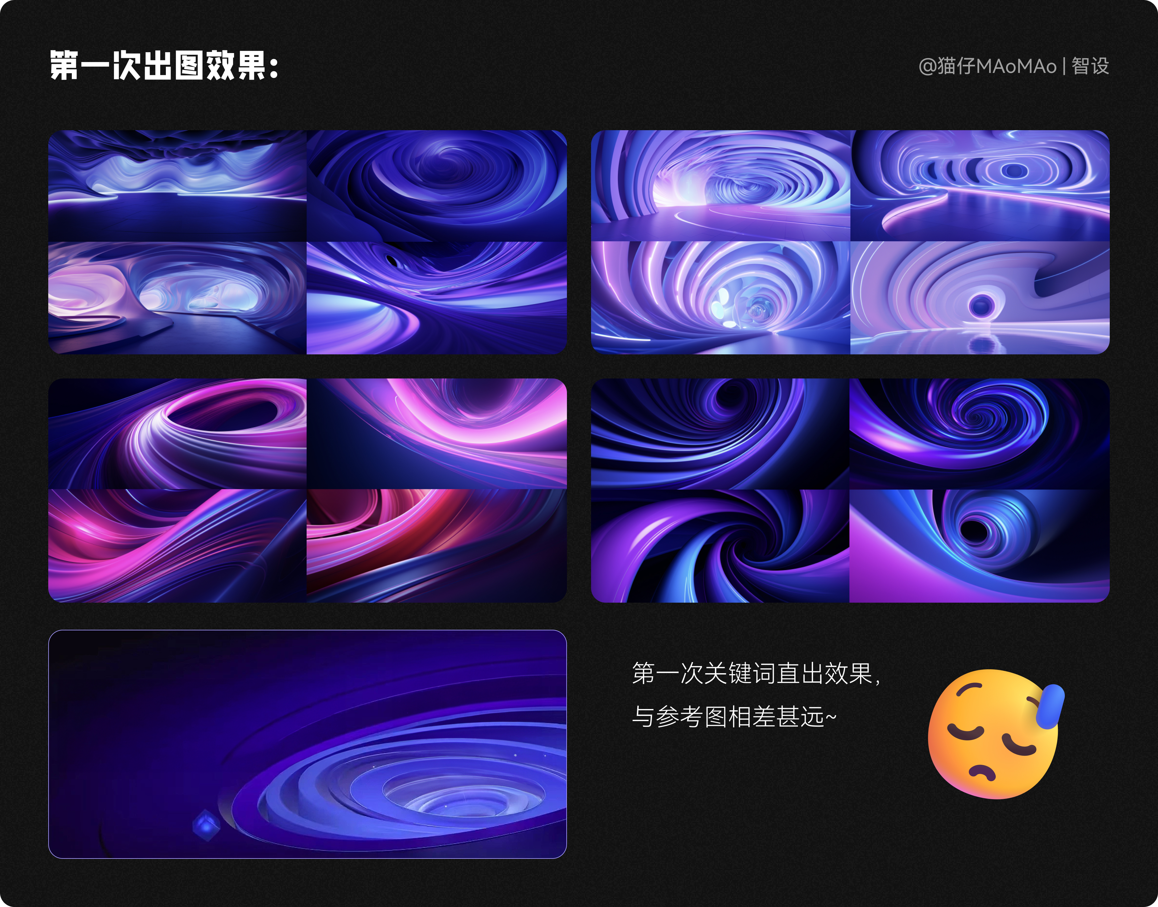 我们看到第一次关键词直出的效果,并不理想,与我们的参考图相差甚远。