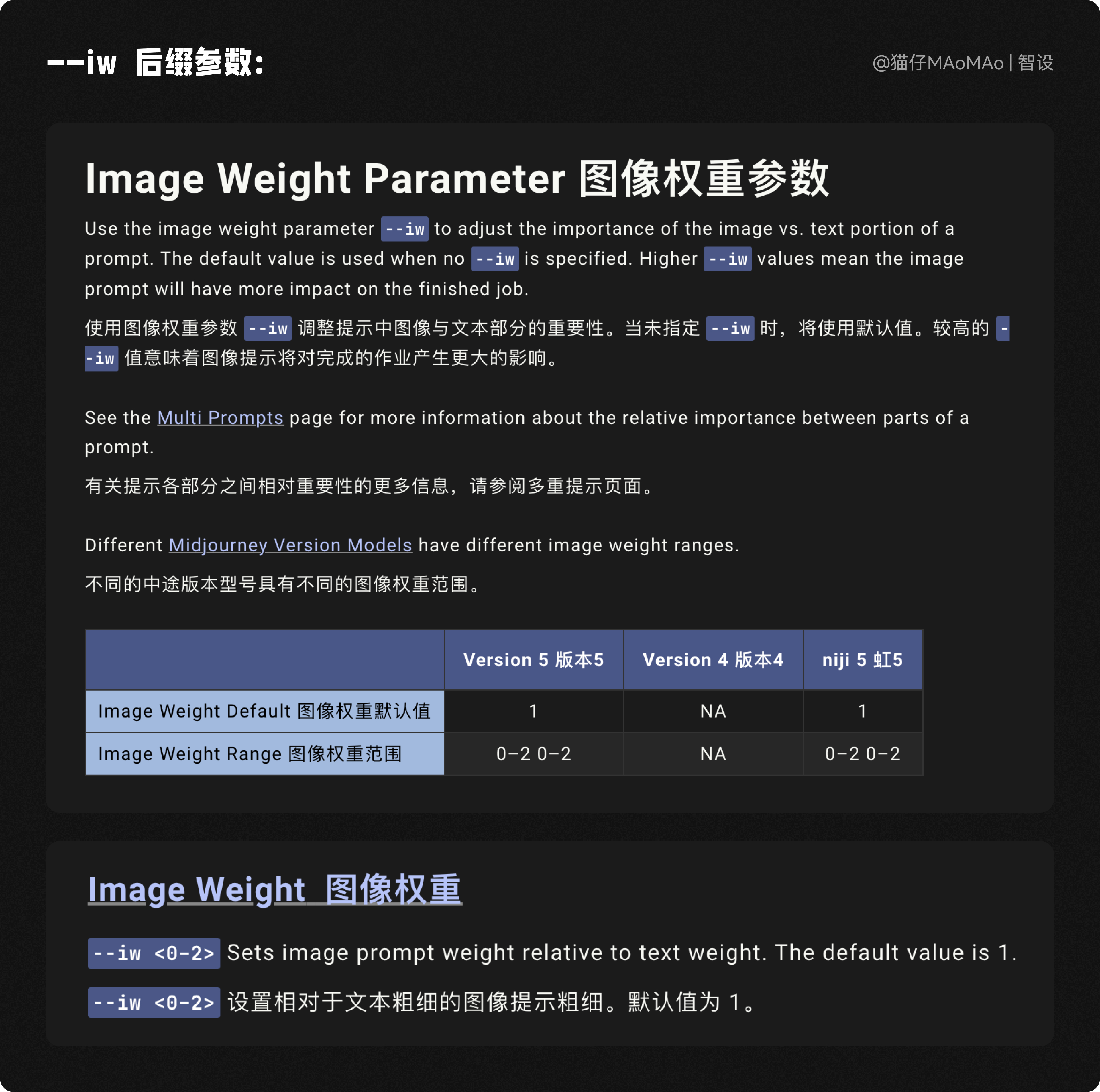 这个时候不要慌,也不要着急去改关键词,我们只需要添加上一个神奇的后缀“--iw 2”,官方文档的翻译中,这个参数叫做“图像权重参数”,用来调整关键词中文本与参考图的相似度,默认值为 1 ,范围为 0~2 ,值越高,生成的图与原图更像,注意在 V5 和 niji 模型中使用才能生效。