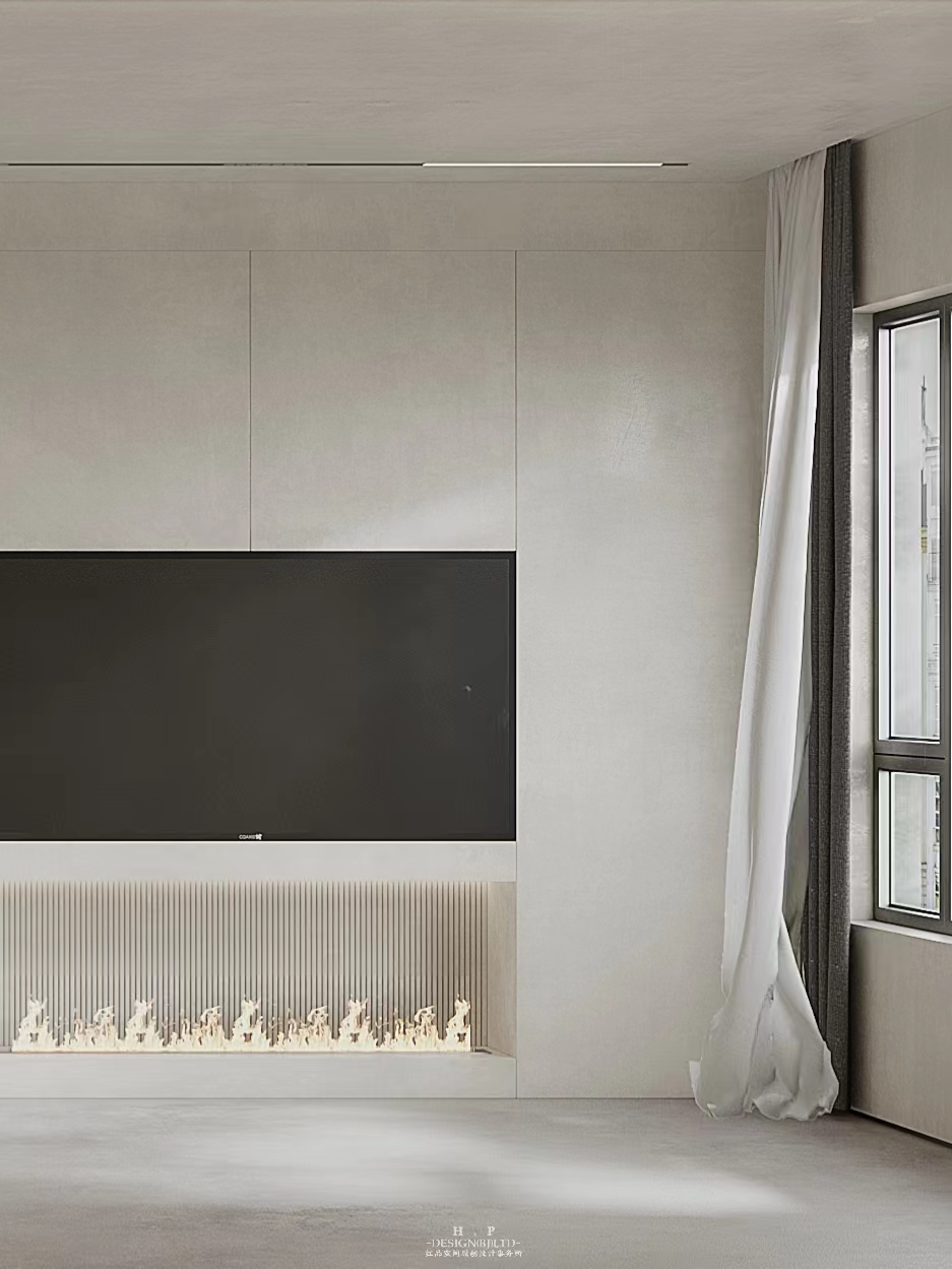 客餐厅的“墙顶地”整体采用微水泥,颜色统一让空间更显大。