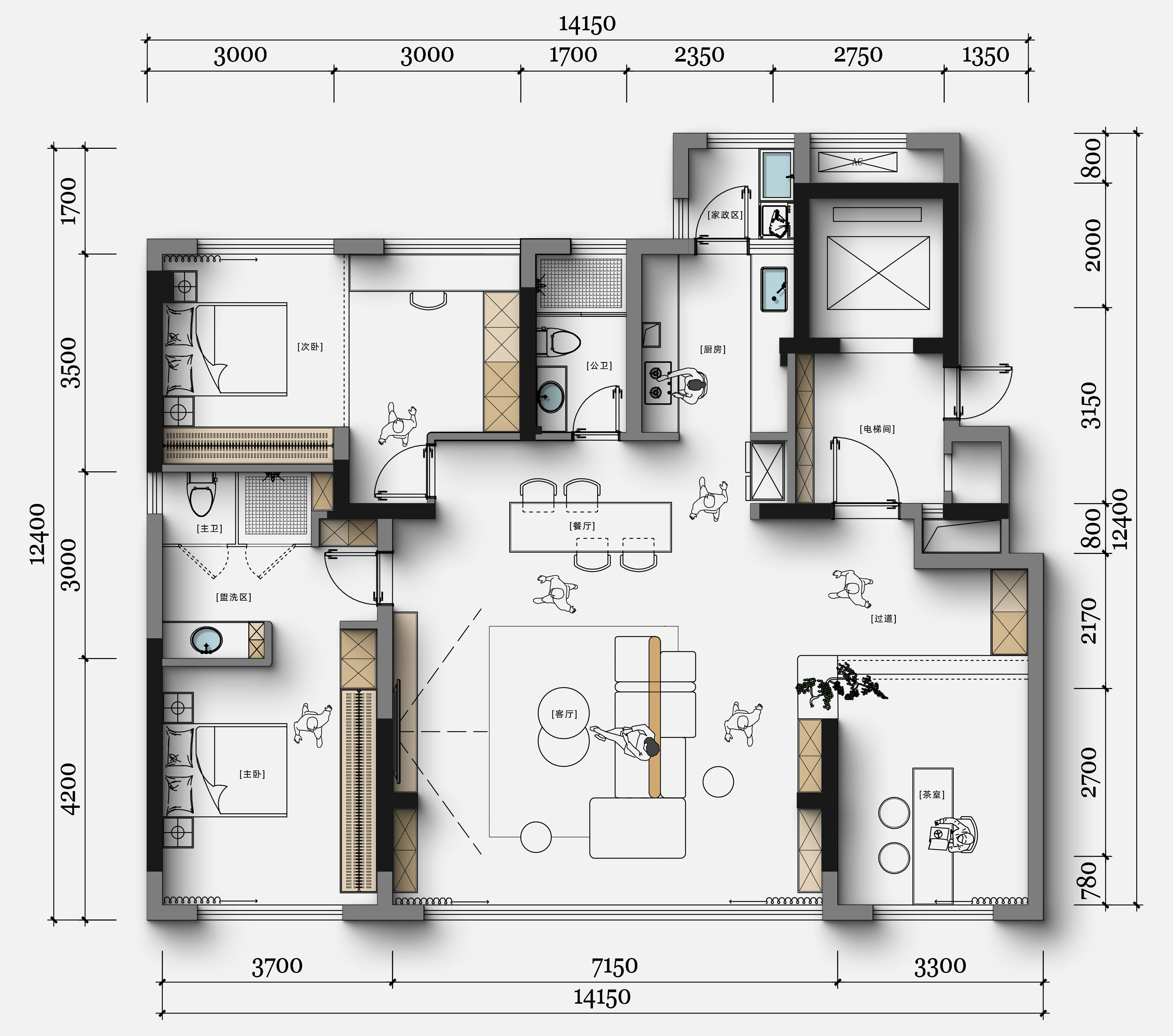 120㎡黑胡桃侘寂风,质朴的高级美感