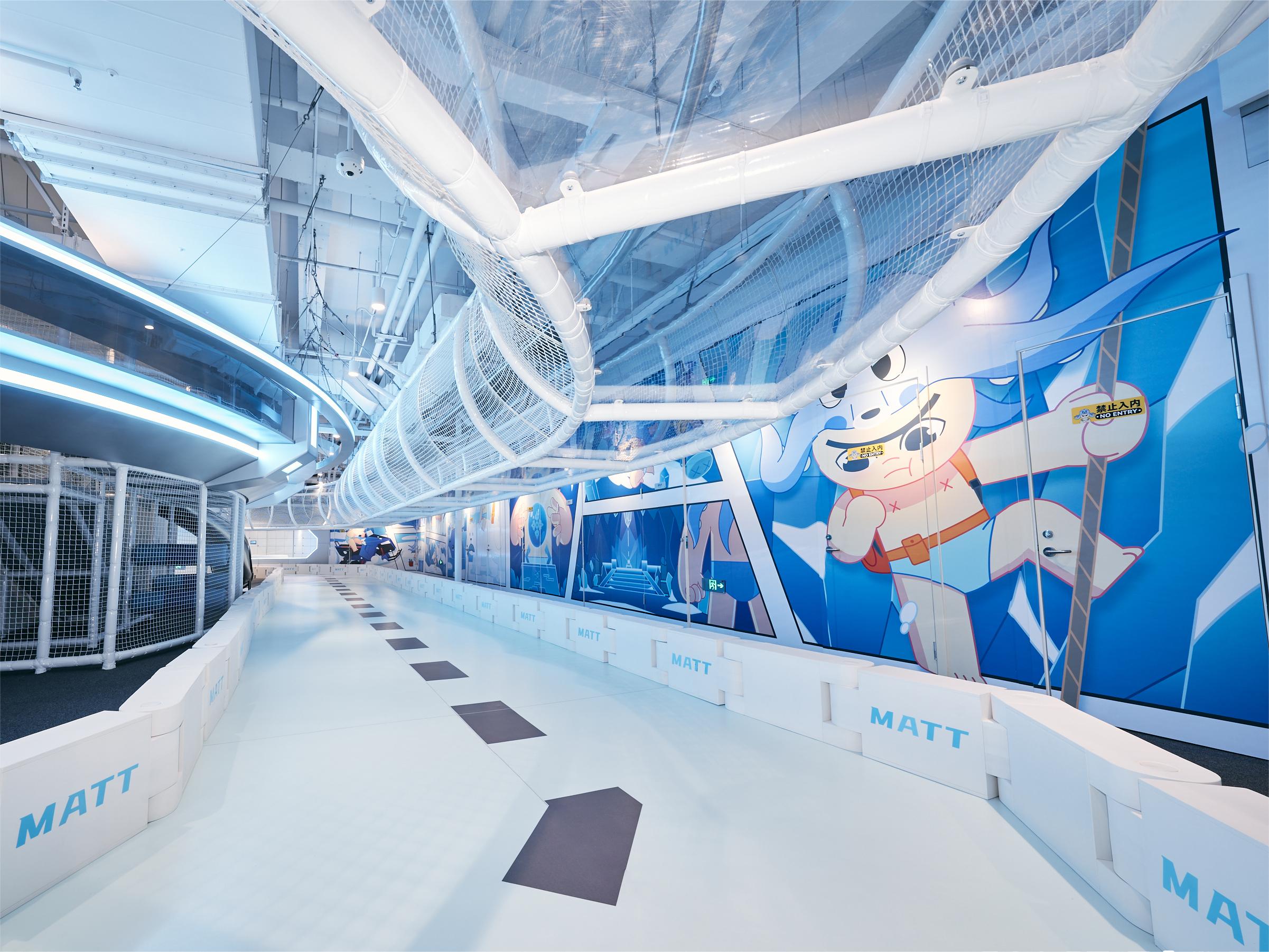SPACE ZOOM贝纵家庭体验中心在上海开设有七家IP主题儿童乐园,此次全新主题馆——『马特·极地异旅』INGROUP以IP角色马特的故事为原型,设计打造了集亲子娱乐、新零售、潮玩等于一体的多功能家庭体验空间,让孩子们置身冰雪世界,沉浸式感受在冰雪圣地探险的魅力。