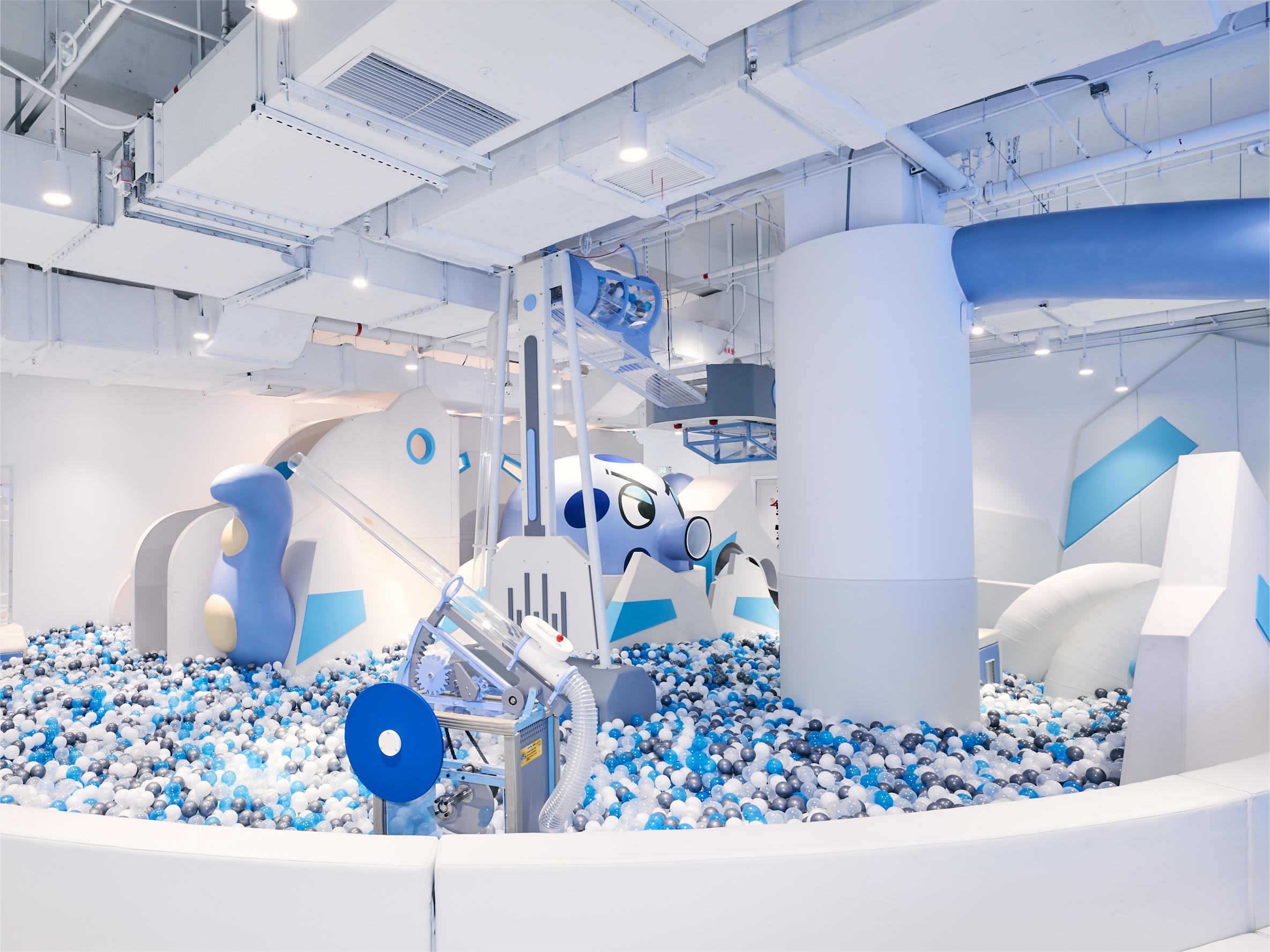 INGROUP将品牌IP角色故事与空间设计融合,以冰雪极地为主题元素,生动还原IP故事中众多极地游玩场景,让孩子们在乐园探索途中中收获友情、勇气、成就感,让亲子生活秀出潮流新态度。