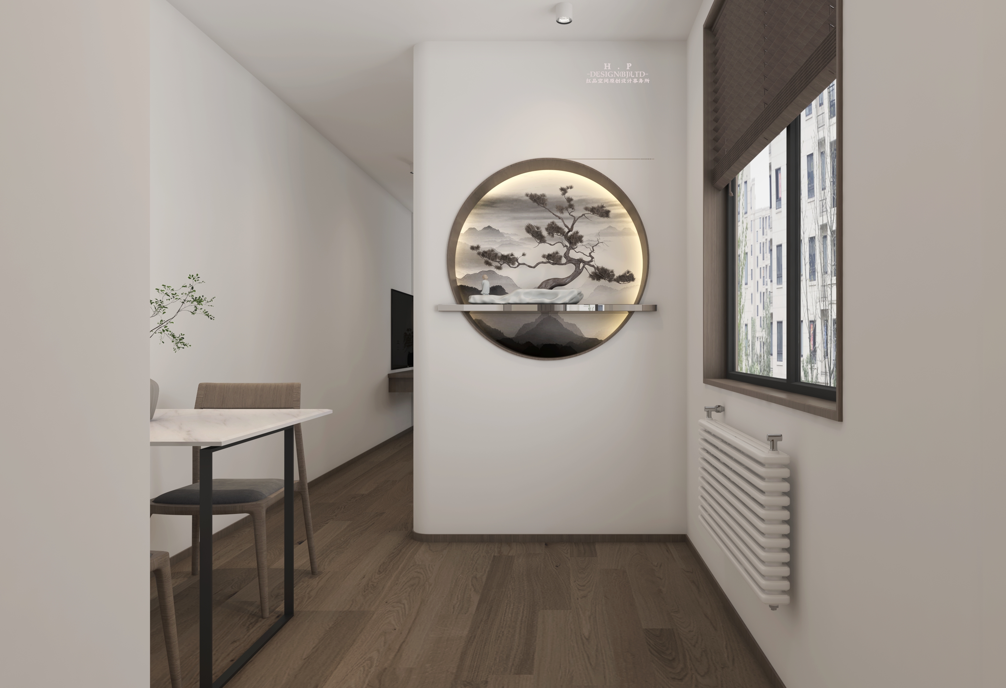 为了确保动线流畅,设计师选择了一个折叠餐桌,无论是日常用餐还是多人聚餐,都可以满足需求。餐桌的一侧还设计了定制的储物柜。