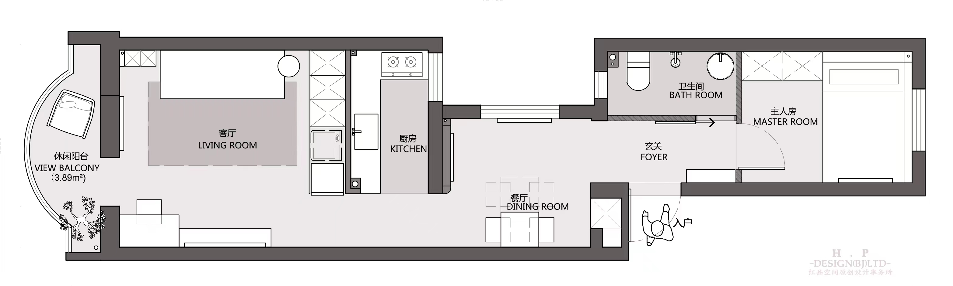 本案位于北京朝阳区,原始户型是一字户型,但墙太多,导致空间利用率不高,房间显得狭小而阴暗。