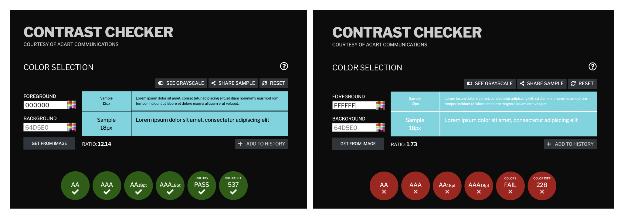 自检地址:https://contrastchecker.com,只需输入前景色和背景色就能得出WCAG评估结果。