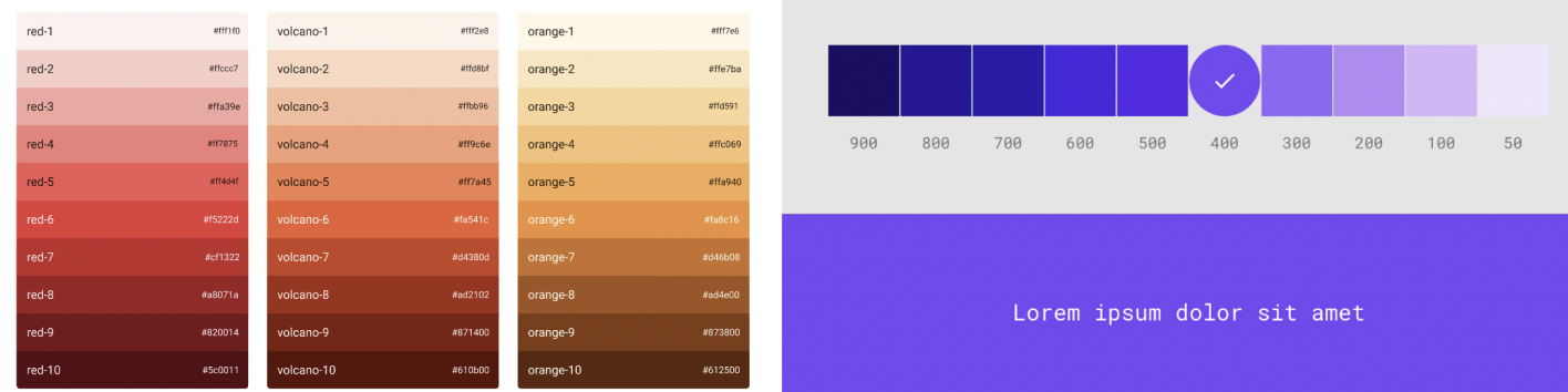 Ant design和Material Design都定义了10个梯度,范围比较广。实际使用的时候不一定要做的这么复杂,根据项目情况定义数量即可。