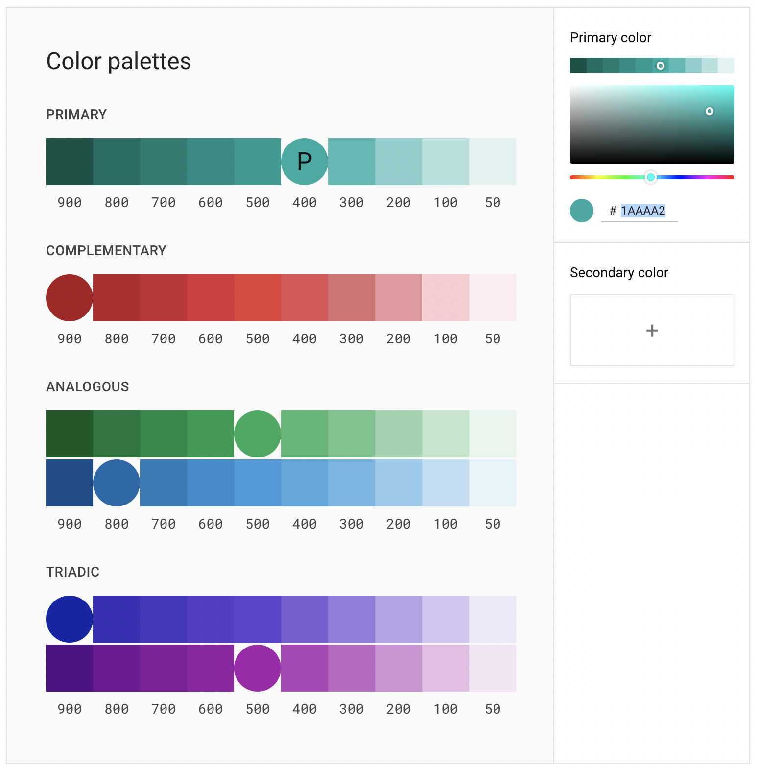 https://m2.material.io/design/color/the-color-system.html#tools-for-picking-colors