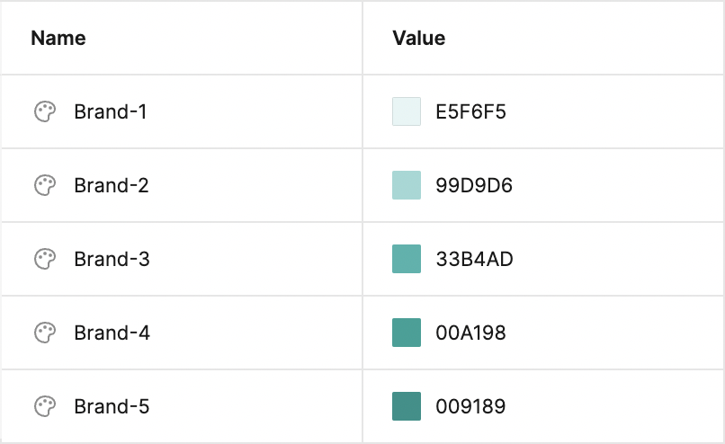 根据上面提到的方法建立了如下从Brand-1到Brand-5的梯度色板。