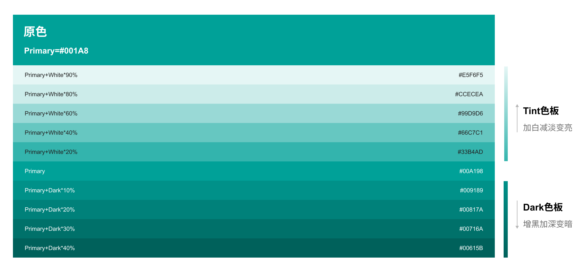 Tint色板=Primary+White*n%