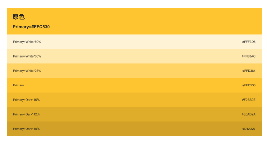 其中Primary=原色;White=#ffffff;Dark=#000000