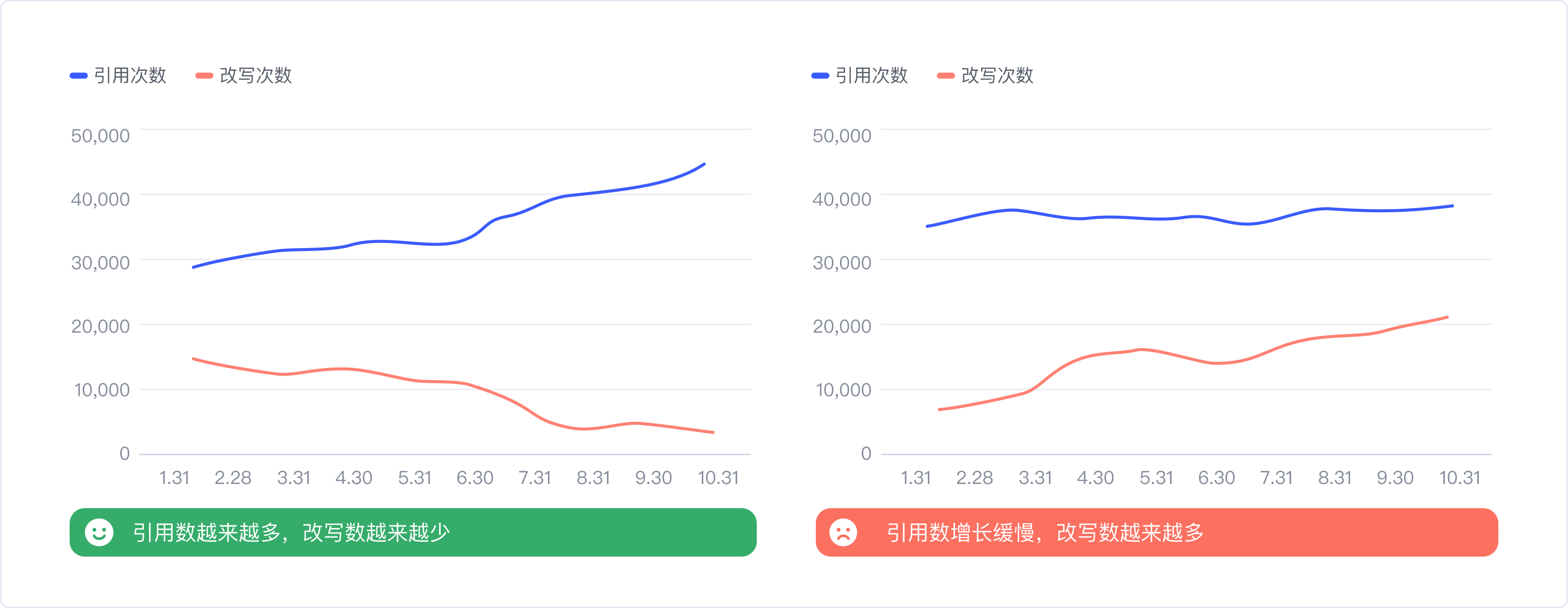 解:把所有组件的引用次数加和,得到总体数值,并结合时间维度,观察组件库整体改写数与引用数各自的变化趋势。用线形图来描述的话,随着时间推移,引用越多,改写越少,两条线呈开口状,那就表示组件库处于越来越健康的状态。反之则需要警惕了。同时我们搭建了一套评分体系,基于引用/改写数值,通过归一化和加权等一系列计算,by月/季度给组件库易用性打分,也能精准的知道组件库易用性的表现,如果分值是下降的,就要具体去定位哪些组件出了问题,再根据上述的方法相应地进行升级。
