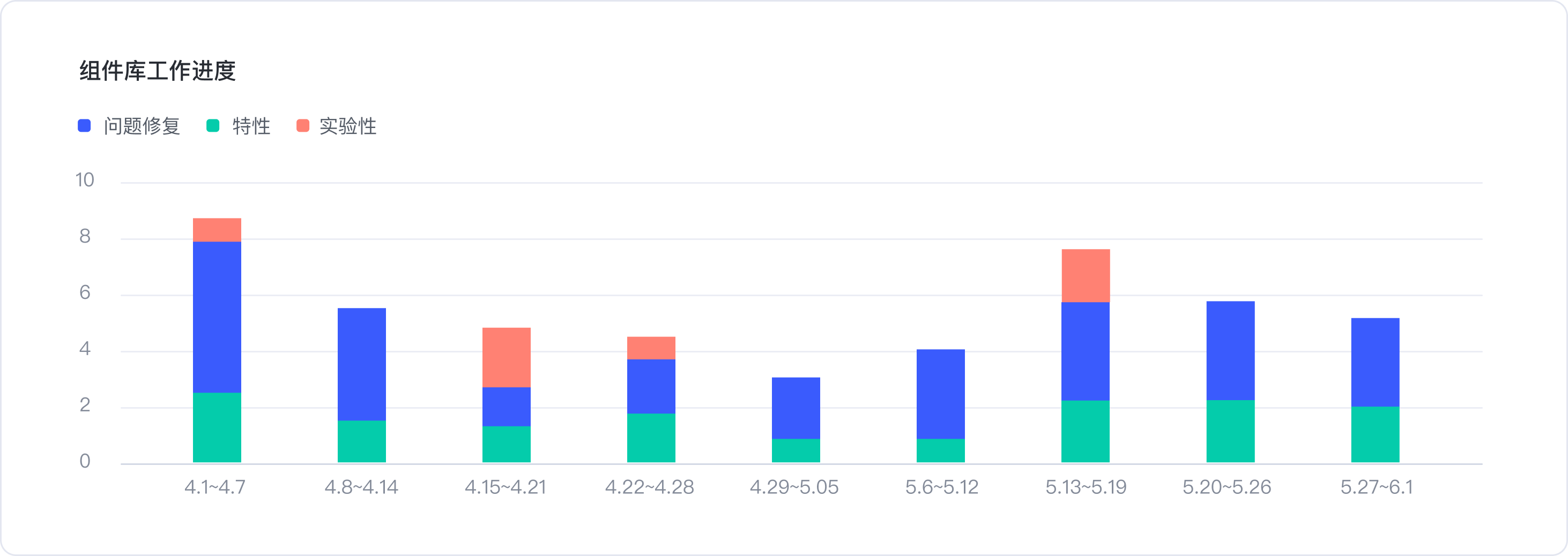 1.组件库迭代进度-迭代性质可分为问题修复、特性和实验性功能增优。