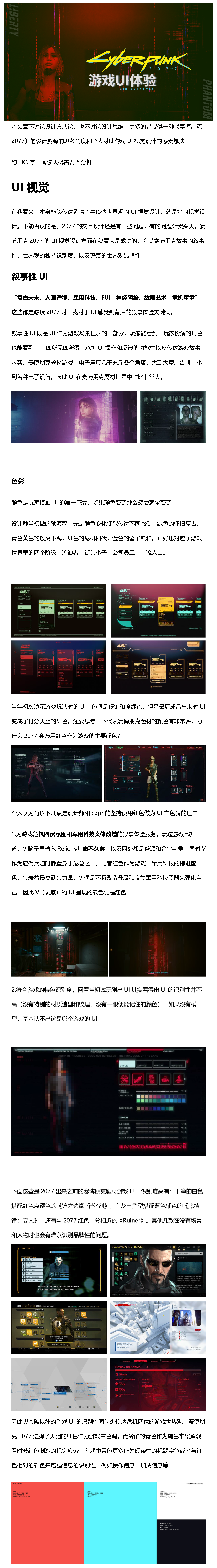 对《赛博朋克2077》设计溯源的思考角度和个人对此游戏UI视觉设计的感受想法
