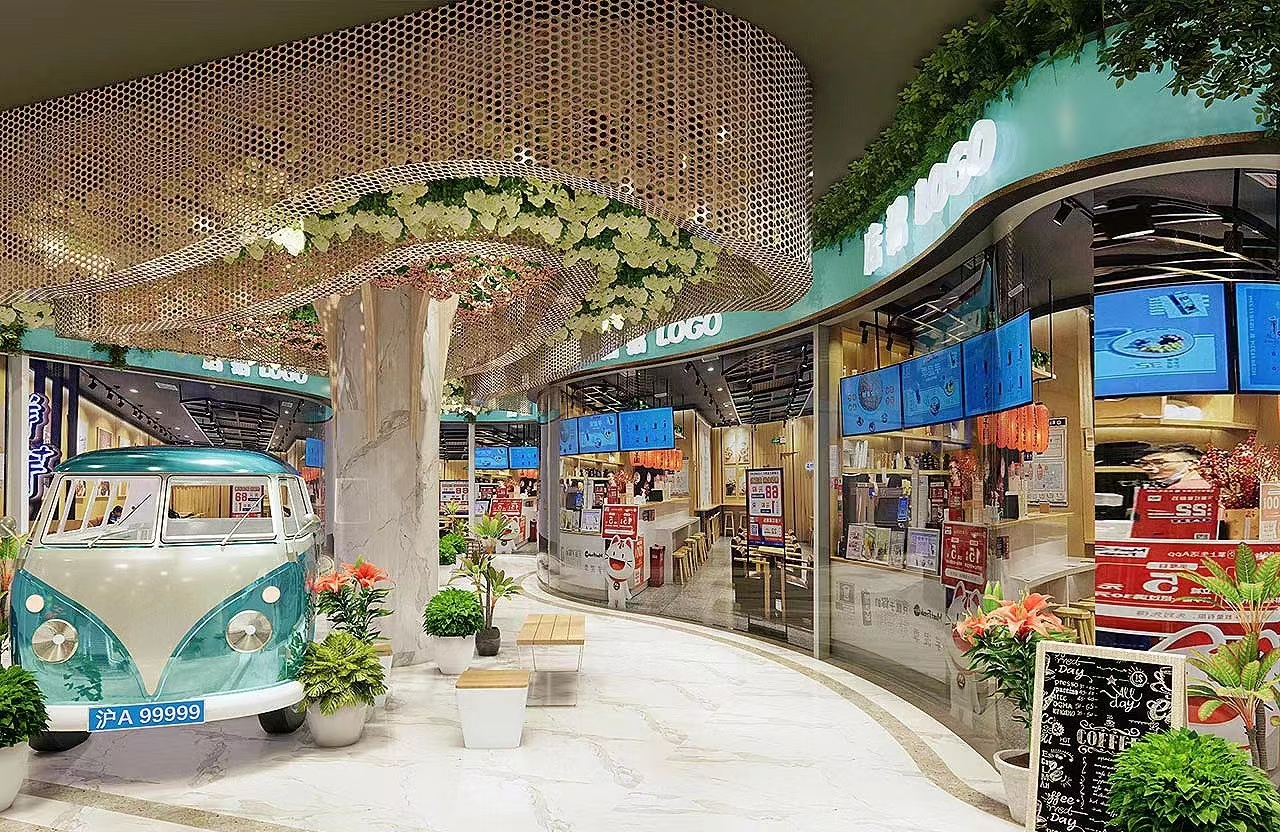 四、细节设施 细节设施是美食街打造优质消费体验的重要环节。如外饰、门头、地砖、植物、桌椅、墙壁壁画、窗户等。 门头:门头设计合理美观且具有品牌特色,否则难以吸引到顾客。 地砖:地面须采用防滑易清洁的耐用材料,如混凝土、花岗岩、瓷砖,同时要考虑减震防噪的问题。 植物:花、草必须种植得精心且有特点,使整个美食街的绿色氛围得以展现。 墙壁壁画:注意搭配和设计感,进行分区设置和主题积累,可以让整个空间不单调、呆板。 总之,一个成功的主题美食街一定是设计师与业主共同打造的精品项目。通过定位及特色、空间布局、灯光氛围和细节设施的组合,可以打造出一个吸引人的美食街,真正实现食品美味和空间美感的相互促进。