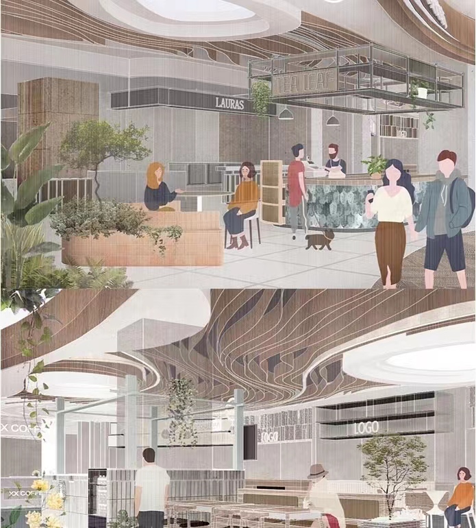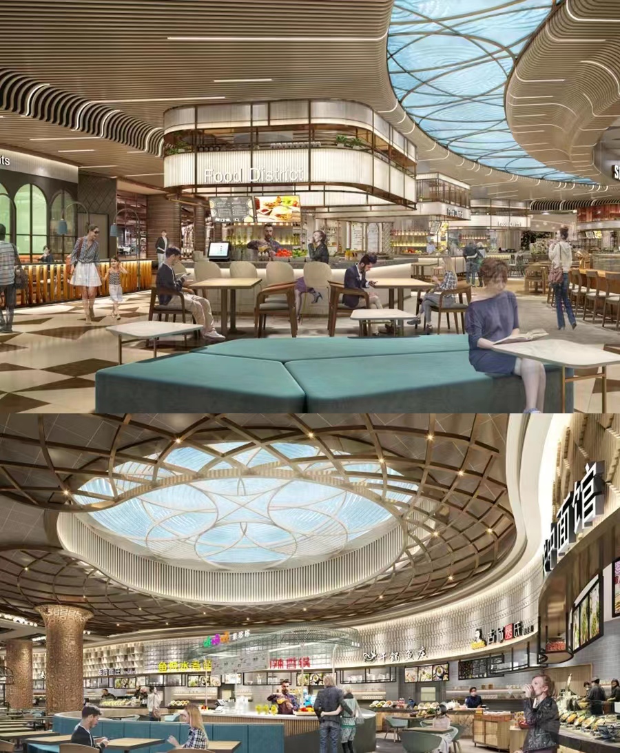 二、空间布局 好的空间布局可以营造出宽敞、舒适的用餐环境。在该主题美食街中,空间布局遵循“分区、交通流线、景观组合、氛围创造”的设计原则。 分区:根据餐饮类型、风格和主题设置不同区域,例如中式、西式、咖啡厅、主题餐厅等。 交通流线:为了保证整个美食街的通畅,最好的交通流线是一个环形,同时加入便于消费者发现和了解不同风味、主题的拐角。 景观组合:美食街的氛围可以通过景观组合全面呈现。例如,小巷或者广场可以放置音乐家或者舞者,增加娱乐性和欣赏性。 氛围创造:美食街的氛围是一个成功的美食街的重要目标,色彩搭配、材质质感、装饰元素、人文背景等各环节相辅相成,设计师必须把握好整体氛围,打造出令人向往的美食街氛围。