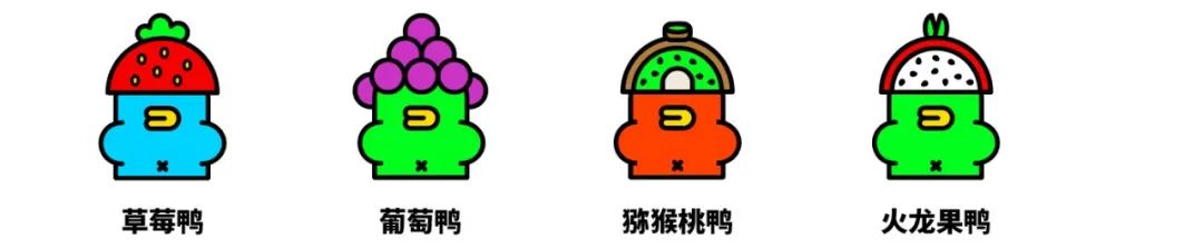 我们的IP形象以方方正正的门墩,结合有着剪刀尾巴的鸭子造型,融入了例如一字眉、大小眼等可爱搞怪的元素,使得我们的IP形象与其他鸭子IP形象有较大不同,更有记忆点。