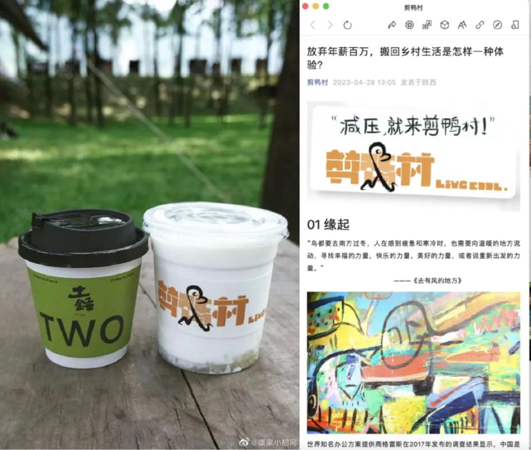 “减压”已成为当代人们共同追求的生活目标,打造剪鸭村的意义是为了能够让城市居民通过亲近自然、享受乡村生活等方式,缓解身心的压力和疲惫感,让人们重新找回内心的宁静与平衡。同时也有益于城市居民的心理健康,减轻其焦虑、抑郁等情绪问题。《设计考察II》课程开始初期,带队教师在带领学生来到实地进行调研,通过与实际的甲方、当地村民等聊天,在理解当地文化的基础上,利用此前学过的已有的设计知识和艺术审美观,结合当地特色提供现代的设计思维,为打造“剪鸭村”这个乡村品牌,提供了三套初步设计思路: