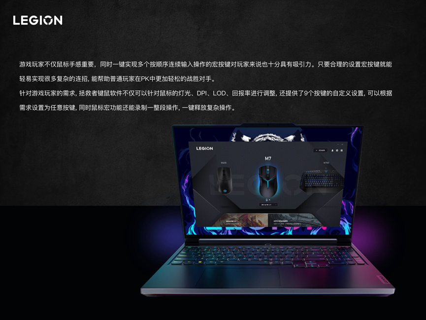 对于电竞游戏产品而言,视觉观感以及动效体验的质感更是极大影响着人们在使用时感受。为拯救者M7打造的LEGION EDGE专属软件,丰富的参数可以自由调整,无论是DPI调节还是各个自定义按键的设置,都可自由灵活定义,完全按照玩家个人习惯喜好随心配置,打造酣畅淋漓沉浸感十足的游戏体验。