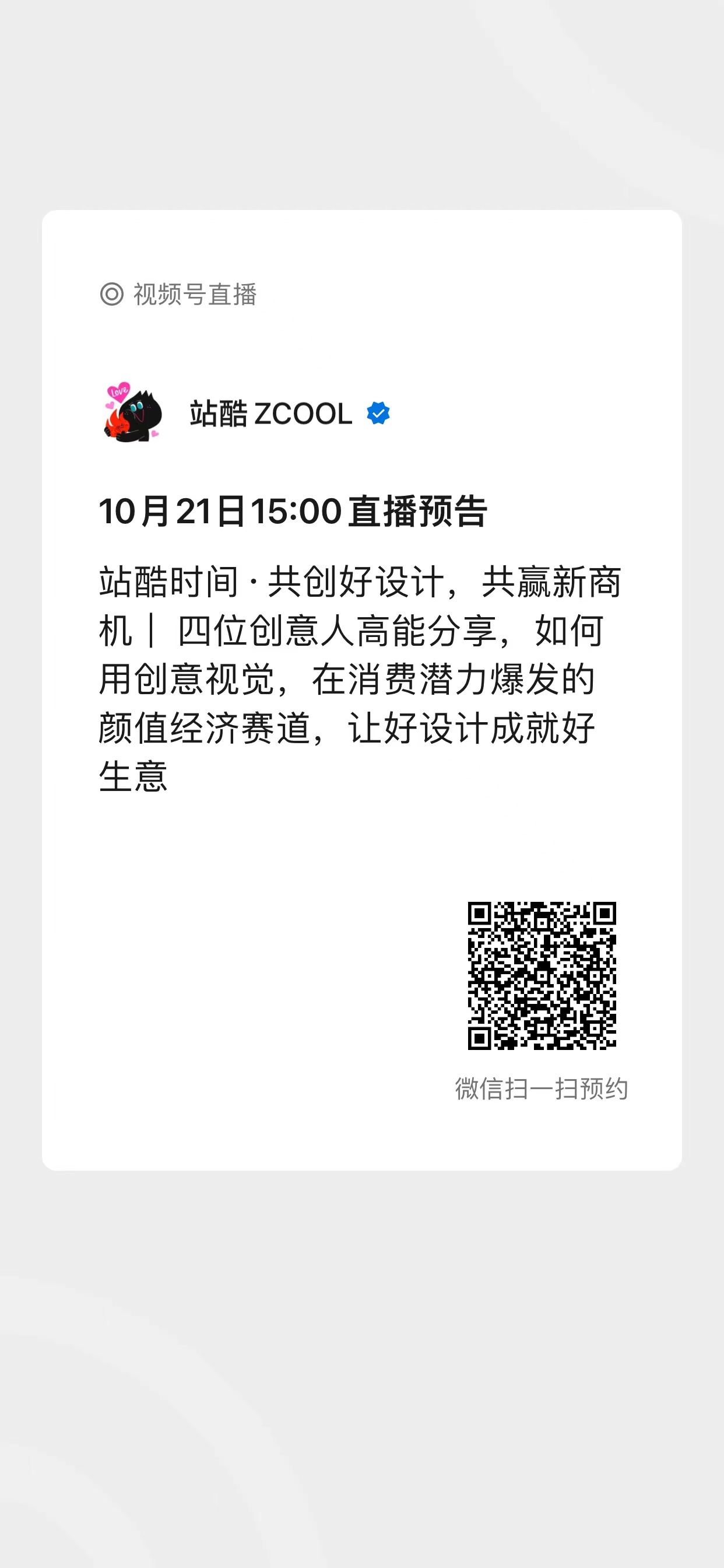 10月21日15:00-16:20,我们将在深圳国际会展中心10号馆二楼AB会议室,进行「站酷时间·共创好设计,共赢新商机」主题分享。四位创意先锋将现场揭秘,如何用创意视觉,在消费潜力爆发的颜值赛道,让好设计成就好生意。