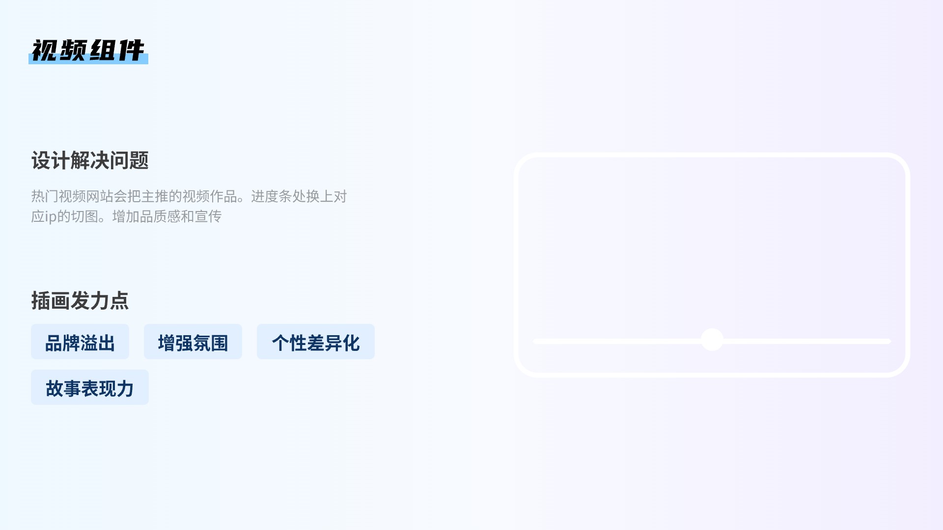 视频网站上一些联名或强推的视频,做套装处理。像bilibili会在进度条替换该视频相关的图标,代入感会更强,即使没有,也会有产品自身的品牌形象。