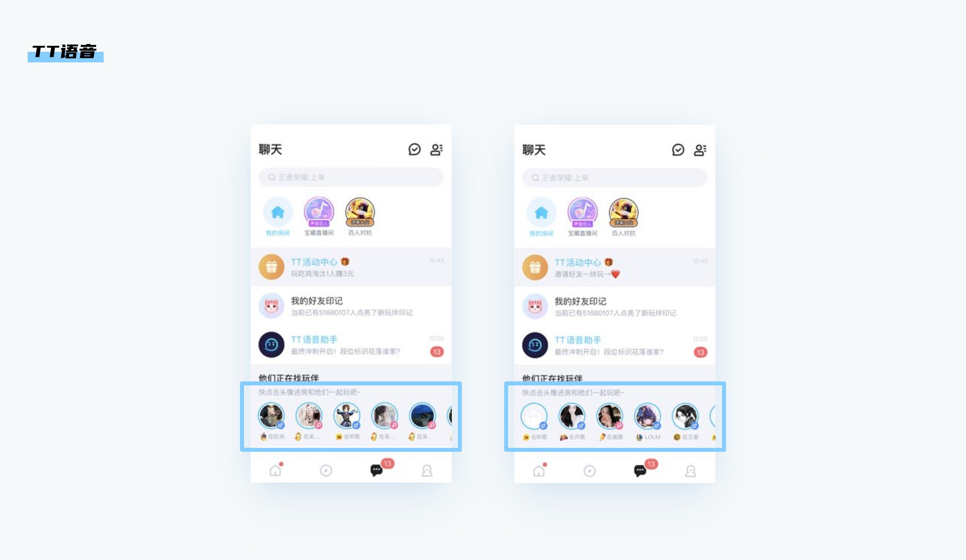 作为游戏语音房社交,用户会接触到多种热门游戏,使用插画图标即使显示该用户当前是否在线,是否在玩哪个游戏。有助于匹配到志同道合的玩家。
