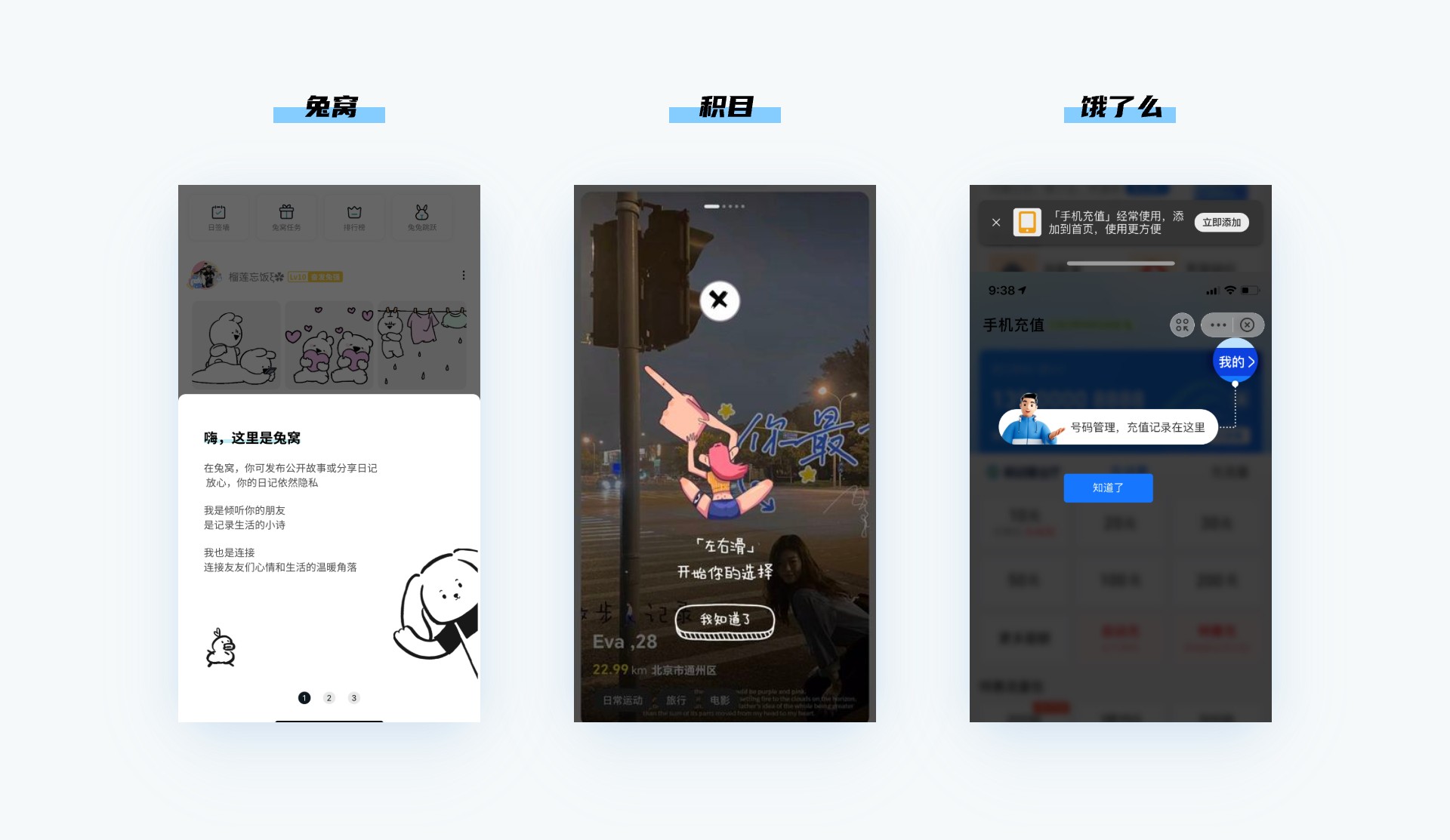 新手引导本身是强制让用户适应新功能而添加的交互,过量或(对用户)无用的引导会使用户反感,插画就可以起到降低负面情绪的作用 2.结合IP形象的新手引导,大大增加了趣味性