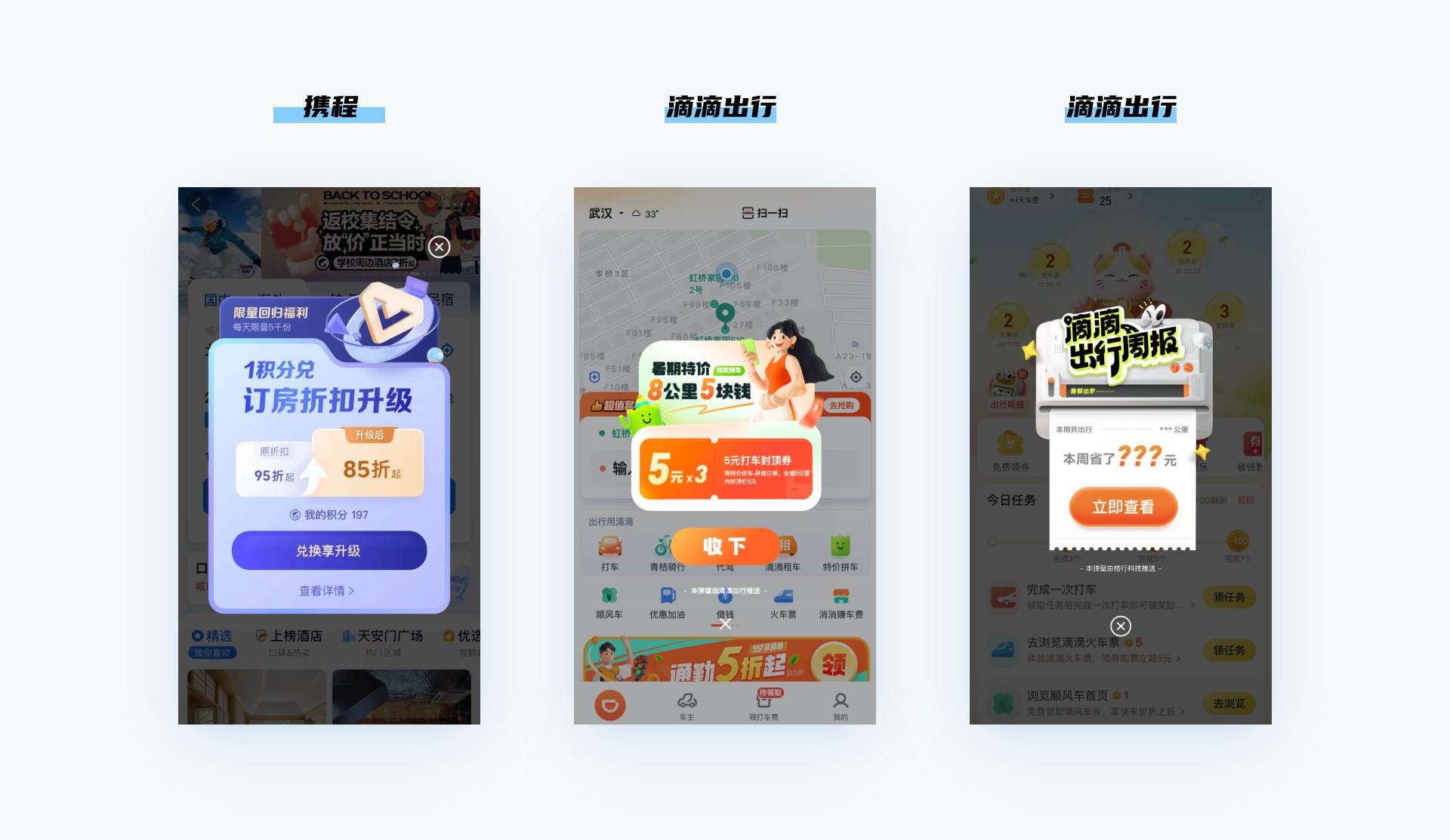 使用IP形象+场景的形式。乘坐着宇宙飞船遨游太空,直观传递出旅行的感觉。