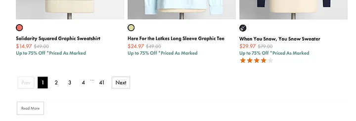 他想创造一项新的技术去替代大家所熟悉的翻页操作,也就是浏览的内容被分成多个页面,通过在底部的分页器控件去特定页面。我们在一些电商平台的网站上仍然可以看到这种体验,就像下面的例子一样。