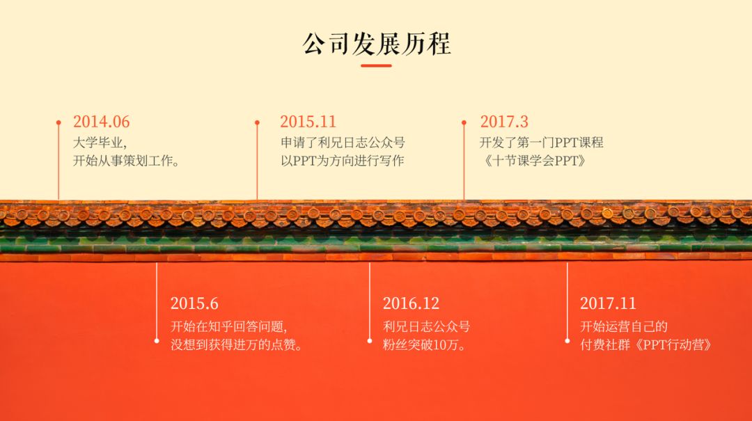 小锐阅览了上百份优秀PPT作品总结出了三个时间轴的创意玩法: