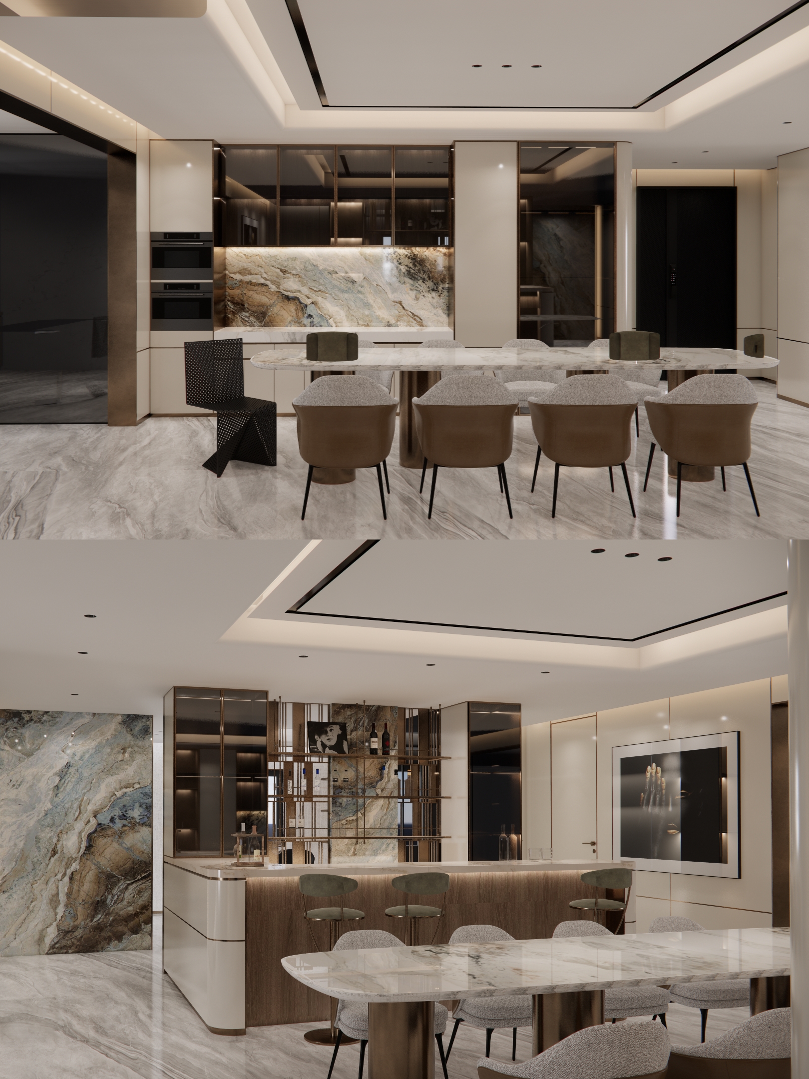 本案是一家三口居住,男主人是外企高管,女主人从事金融行业,夫妻二人有个上高中的女儿,希望在装修中体现高级感,细节中要透漏出艺术气息,整体要有层次感,低调又奢华。